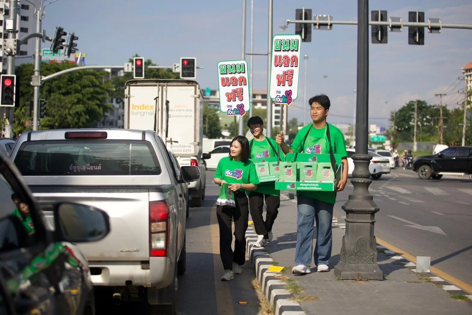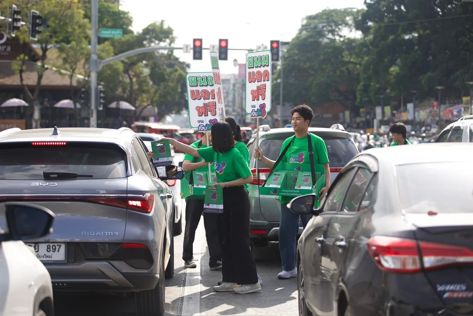 และเดินสายแจกคนใช้รถตามสี่แยกไฟแดงใหญ่ ทั้ง 3 จุด ● แยกแอร์พอร์ต ● แยกเมญ่า ● แยกศาลเด็ก