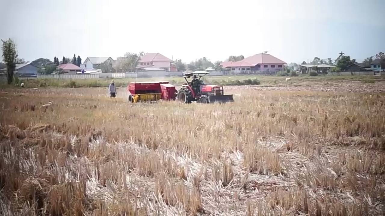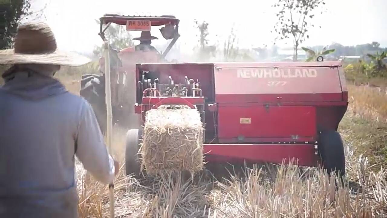 ชาวบ้านในพื้นที่อำเภอเมือง จังหวัดพะเยา กำลังอัดฟางกลางทุ่งนา โดยใช้รถไถขนาด 34 แรง ต่อเข้ากับเครื่องอัดฟาง แล้วลากจูงไปตามทุ่งนาที่มีฟางหลงเหลืออยู่จากช่วงฤดูทำนาปีที่ผ่านมา ซึ่งจะเริ่มอัดฟางตั้งแต่ช่วงสาย ๆ เนื่องจากฟางแห้งง่ายต่อการอัด ไปจนถึงค่ำ เพื่ออัดฟางไว้ให้กับวัวที่ตนเอง เลี้ยงไว้กินในช่วงฤดูแล้ง และรับจ้างอัดให้กับชาวบ้านที่ไม่มีเครื่องอัดฟางเป็นอาชีพเสริมอีกทาง