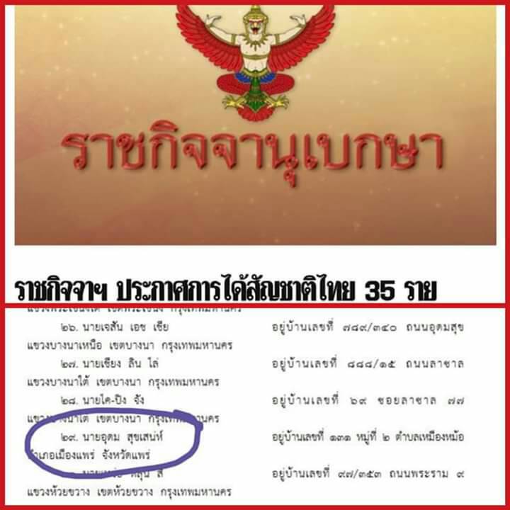 ผู้สื่อข่าวรายงานมาจากจ.แพร่มาเมื่อวันที่ 12 กุมภาพันธ์ 2563 เกี่ยวกับเรื่องของคนไทยคนใหม่ นายอุดม สุขเสน่ห์ เวลา 09.00 น.โรงพยาบาลแพร่ ค.ในเวียง อ.เมือง จ.แพร่ ได้มีโอกาสต้อนรับ นายอุดม สุขเสน่ห์ คนไทยคนใหม่ ซึ่งเพิ่งได้รับสัญชาติไทย มาสดๆร้อนๆเมื่อวันที่ 11 กุมภาพันธ์ 2563 โดยนายอุดม สุขเสน่ห์ เดินทางมาพร้อมภรรยา นางคณิตา สุขเสน่ห์ อยู่บ้านเลขที่ 131 หมู่ 2 บ้านปทุม ต.เหมืองหม้อ อ.เมือง จ.แพร่
