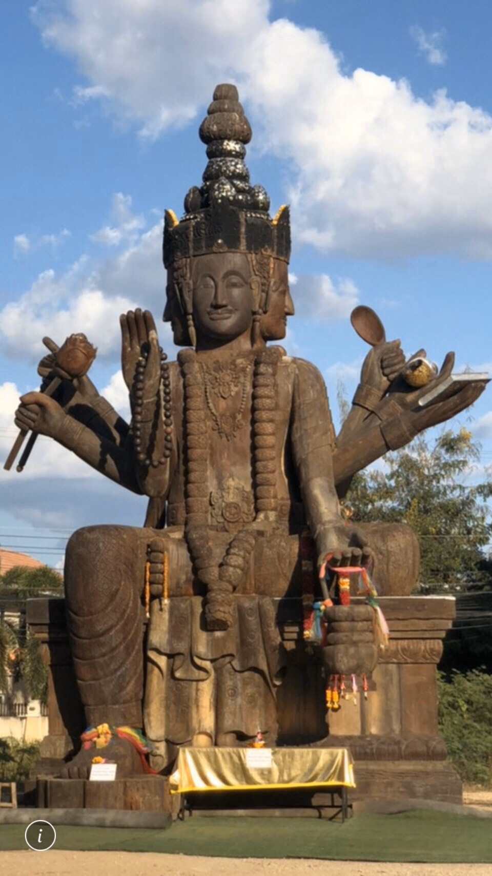 องค์ท้าวมหาพรหม ก็มีขนาดใหญ่ สูง 21 เมตร กว้าง 8 เมตร น้ำหนักประมาณ 60 ตันแกะสลักโดยไม้ตะเคียนทองเช่นกัน ถือว่าเป็นสุดยอดของโลกเลยก็ว่าได้ อาจารย์เข้ม กล่าว