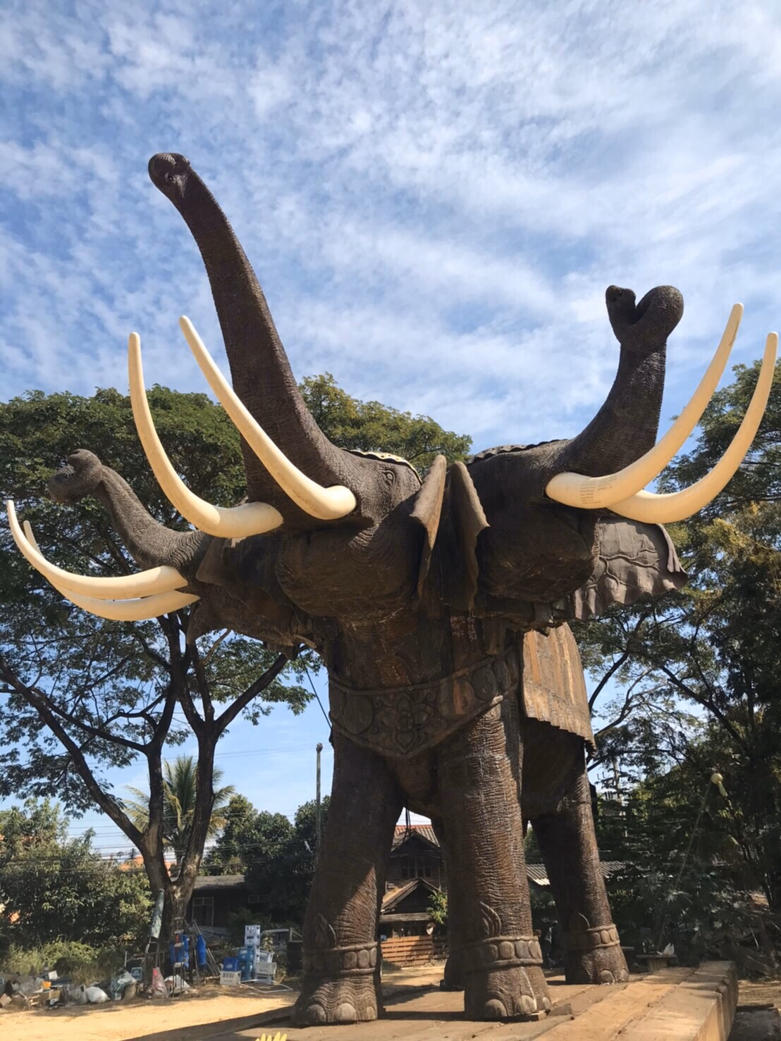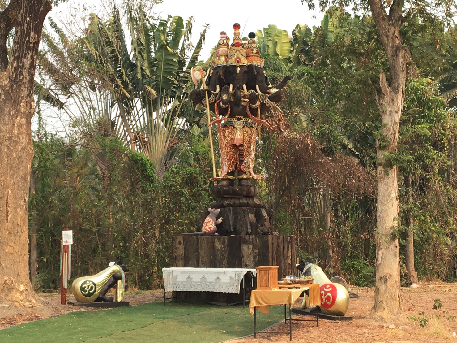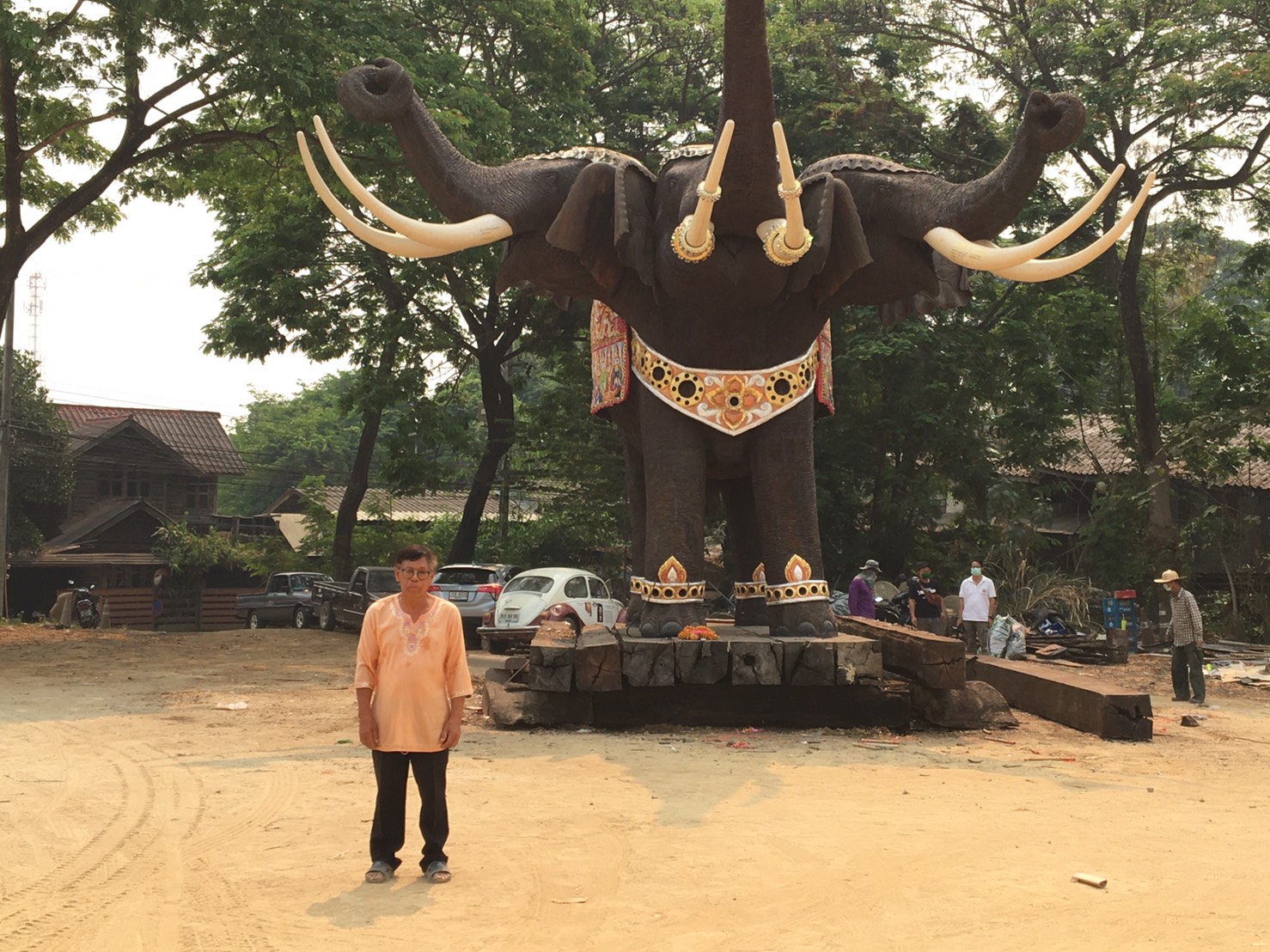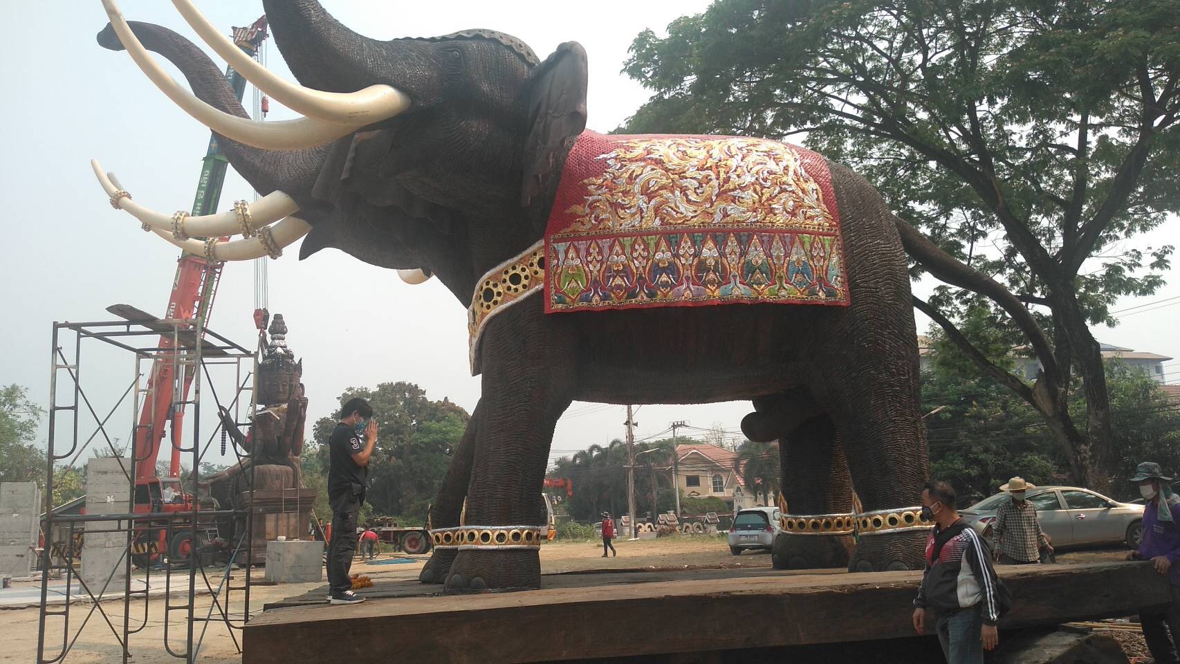 วันนี้ 2 เม.ย. 2563 เมื่อเวลา 11.00 น. อาจารย์เข้ม มฤคพิทักษ์ เจ้าของบ้านร้อยทวารบาล บ้านเทวาลัย สถานที่ประทับพระพิฆเณศวรสามเศียร ปางประทานพร แกะสลักจากไม้ตะเคียนทองท่อนเดียว มีความสูง 6 เมตร น้ำหนักประมาณ 5 ตัน เปิดให้ชมฟรีอยู่หลัง มช. และได้รับความสนใจจากประชาชนทุกหมู่เล่าไปกราบไหว้ขอพรเป็นจำนวนมากแล้วนั้น วันนี้อาจารย์เข้ม ได้นิมนต์พระสงฆ์ 2 รูป ประกอบพิธีอัญเชิญยกพระอินทรงพญาช้างเอราวัณ และพญาช้างเอราวัณ ขึ้นประทับบนแท่นฐาน ณ เทวาลัยเทพตะเคียนทองเชียงใหม่ บนถนนสายเชียงใหม่-สันกำแพง เลยห้างพรอเมนาด้าประมาณ 1 กิโลเมตร จากเชียงใหม่อยู่ฝั่งซ้ายมือ ซึ่งเทวาลัยเทพตะเคียนทองเชียงใหม่สถานที่แห่งนี้ มีเทพ 3 องค์ องค์พระพิฆเนศสามเศียรได้สร้างจากไม้ตะเคียนประทับไปทางซ้ายมือด้านในเทวาลัยเทพตะเคียนทองเชียงใหม่ไว้ก่อนหน้านี้แล้วหลายเดือน ที่สร้างขึ้นใหม่อีกคือ องค์ท้าวมหาพรหม และพระอินทรงพญาช้างเอราวัณ และได้ประกอบพิธีดังกล่าววันนี้