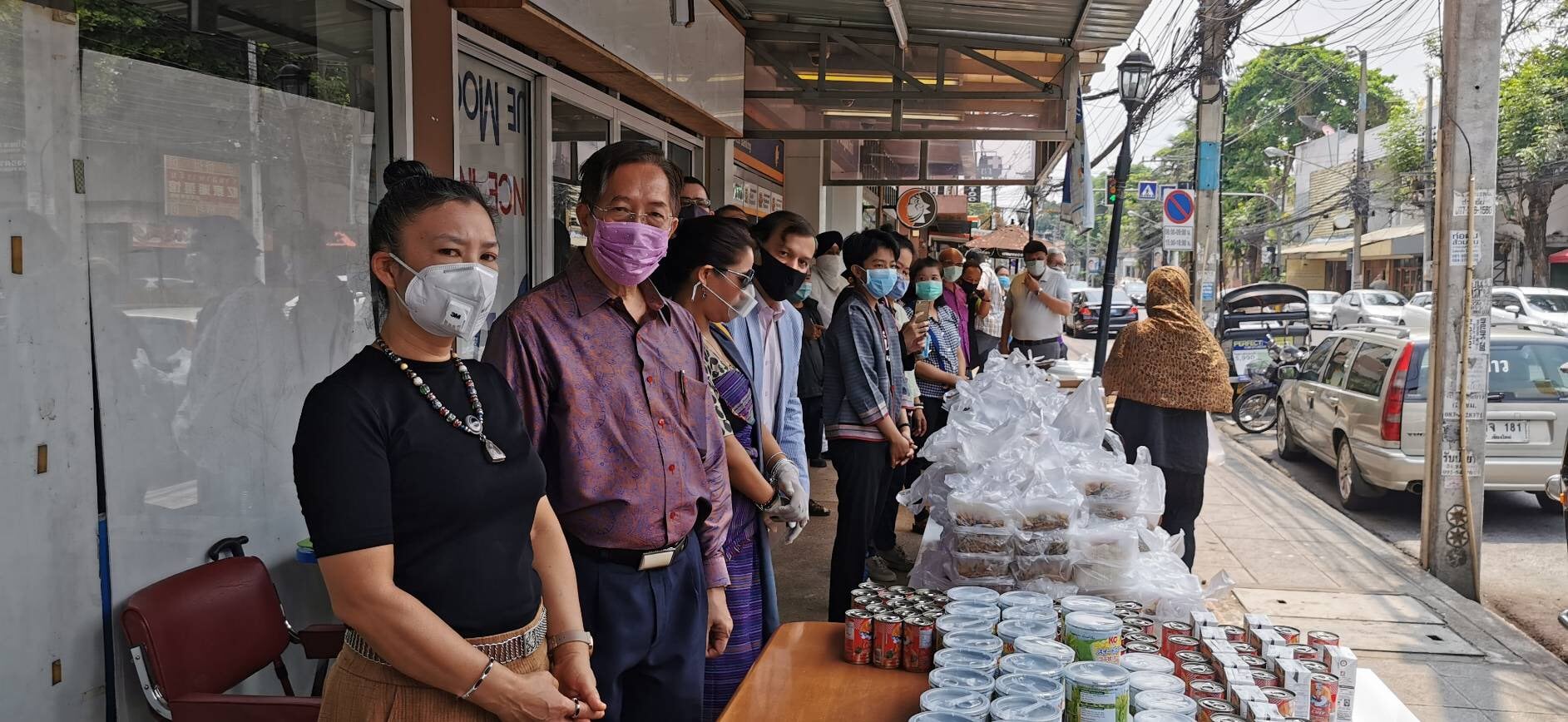 ร่วมปันน้ำใจแจก ข้าวสาร อาหาร ขนม และน้ำดื่ม ให้แก่ผู้ประสพวิกฤตโรคระบาดโควิด 19 โดยวันนี้มีท่านกงสุลอินเดีย ประจำจังหวัดเชียงใหม่ ชิริช เจนและภริยา ร่วมกับ เจ้าภาคินัย ณ เชียงใหม่ กลุ่มพ่อค้าชาวอินเดียนับถือศาสนาซิกในจังหวัดเชียงใหม่ กลุ่มสื่อมวลชนช่างภาพ รวมทั้งดร.องอาจ กิตติคุณชัย บริษัท ซันสวีท จำกัด โรงงานผึ้งน้อยเบเกอรี่ กลุ่มชาวอเมริกันที่อาศัยอยู่ในจังหวัดเชียงใหม่ นายไมเคิ้ล ร้านซื่อตรงแบตเตอรี่ ปภ.จังหวัดเชียงใหม่ ได้รวบรวมสิ่งของ มีข้าวสาร อาหารปรุงสำเร็จ หลายอย่าง อาหารกระป๋อง และขนมเบเกอรี่ หมี่ขนมจีนฯลฯ รวมแล้วกว่า 400 ชิ้น มาแจกให้ประชาชนย่าน ถนนศรีดอนไชยและ ที่อาศัยบริเวณใกล้เคียงมารับของแจกอย่างทั่วถึงกัน เพื่อบรรเทาความเดือดร้อน ที่ต้องอยู่บ้านช่วยชาติ ลดการเเพร่ระบาด เชื้อโรคโควิด-19 และบางครอบครัวได้รับผลกระทบที่ต้องหยุดการประกอบอาชีพ