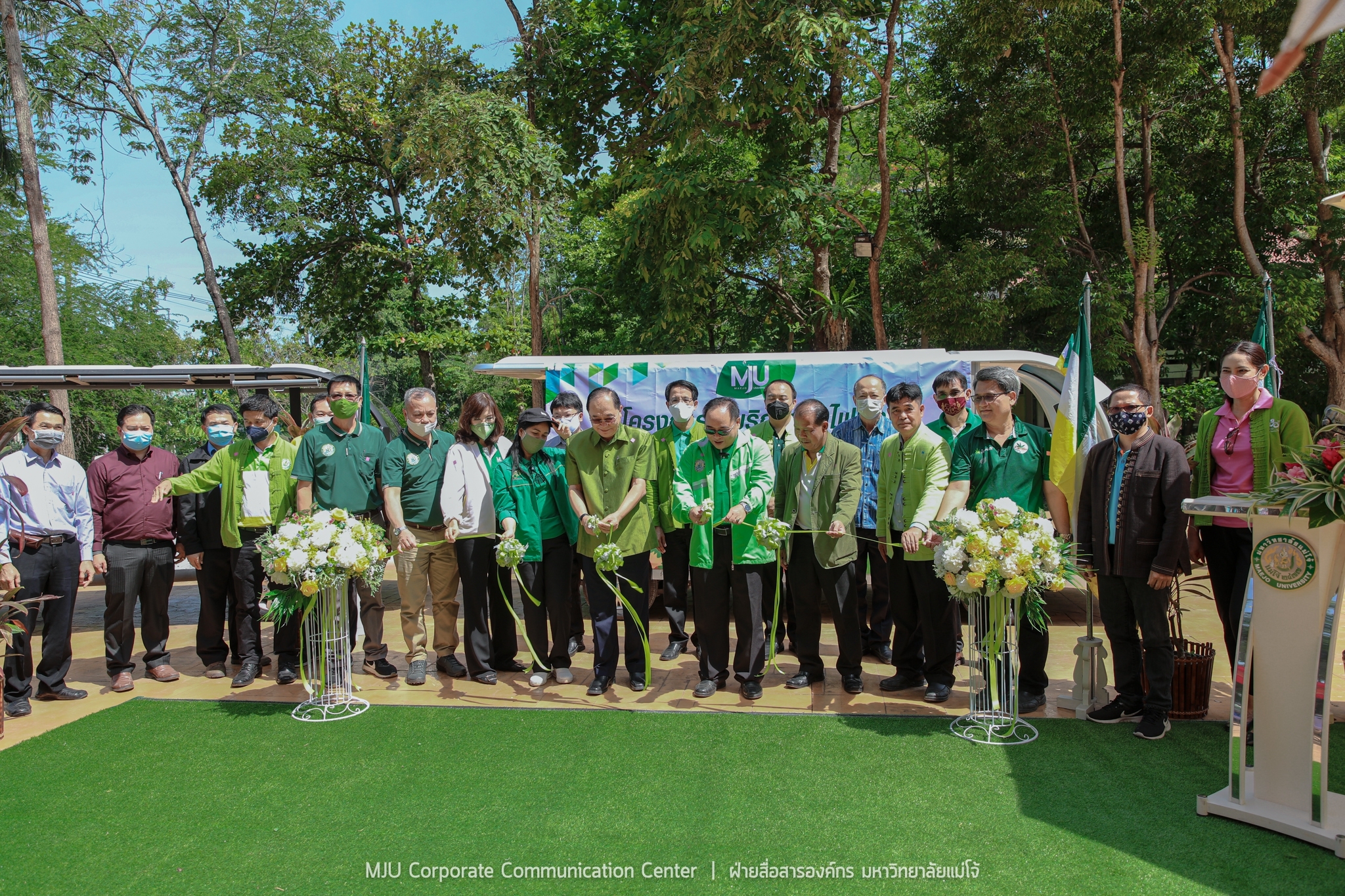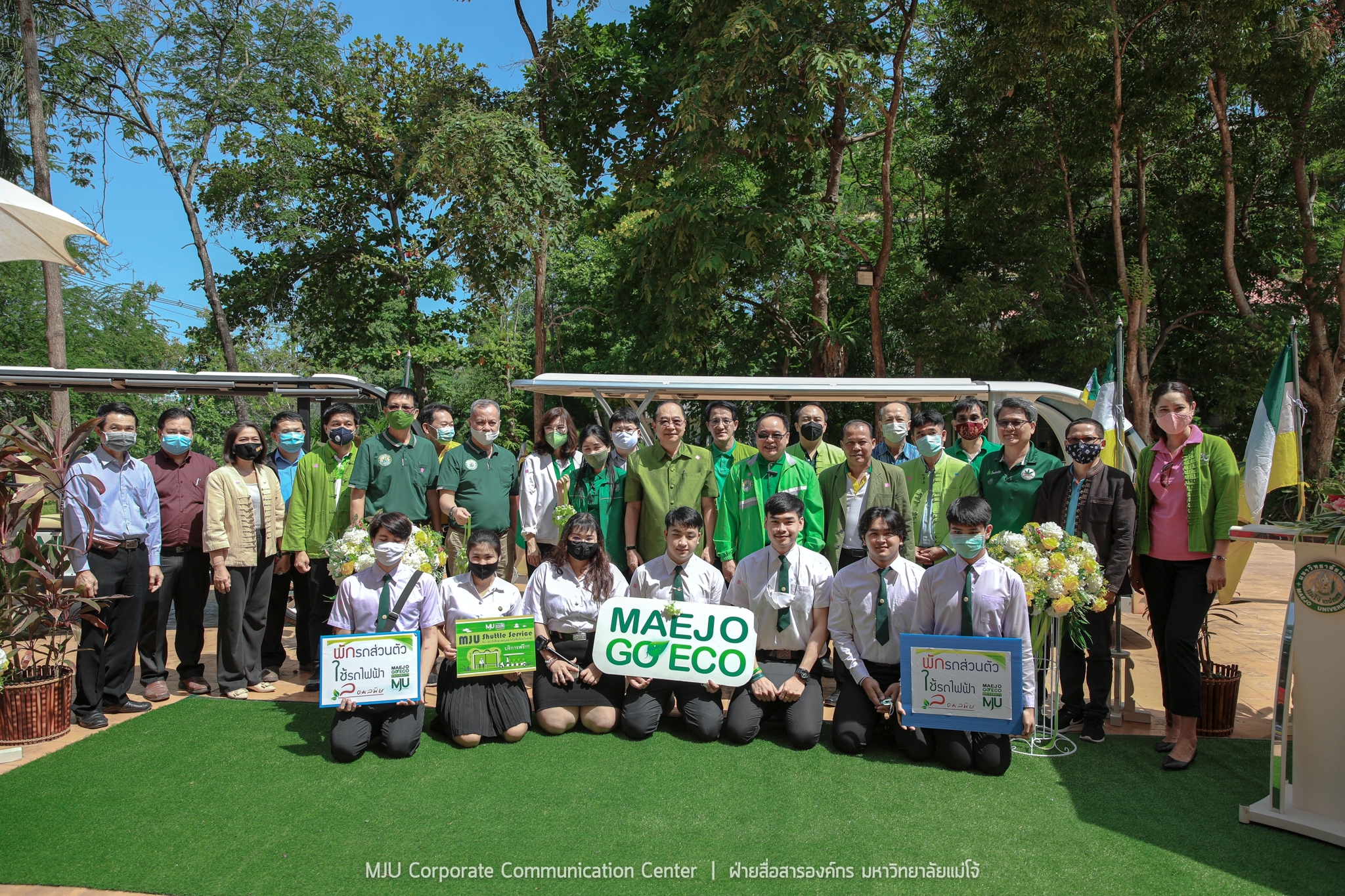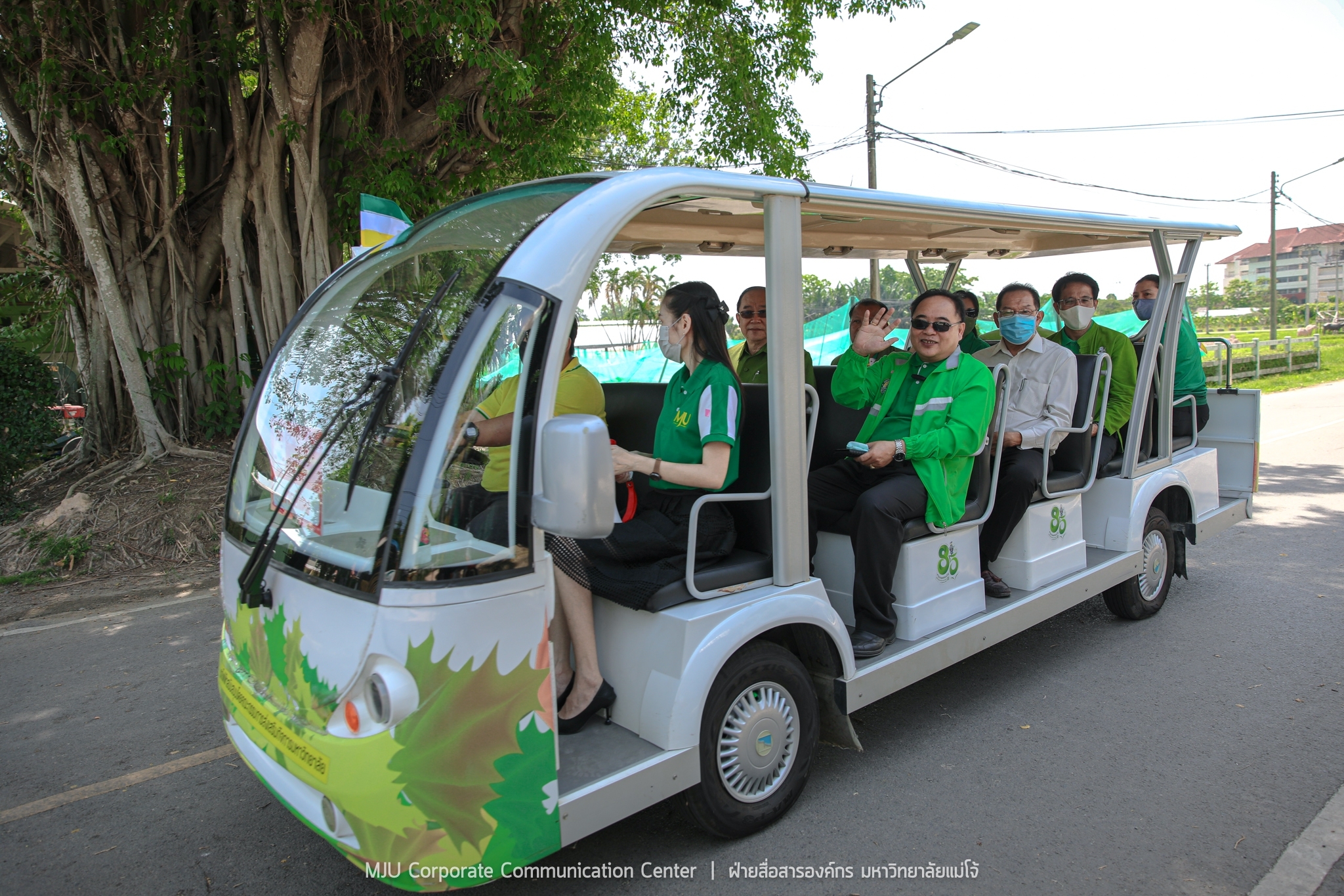 วันอังคารที่ 12 พฤษภาคม 2563 ดร.กษิต พิสิษฐ์กุล รองประธานกรรมการส่งเสริมกิจการมหาวิทยาลัยแม่โจ้ เป็นประธานในพิธีเปิดทดลองให้บริการรถไฟฟ้ารับ-ส่ง ภายในมหาวิทยาลัย ขับเคลื่อนนโยบาย Green University เพื่อความสะดวก ปลอดภัย ลดอุบัติเหตุ ลดการใช้รถยน์ รถจักรยานยนต์ และลดการปล่อยก๊าซเรือนกระจกในพื้นที่มหาวิทยาลัย อำนวยความสะดวกให้กับบุคลากรและนักศึกษา โดยมี รองศาสตราจารย์ ดร.วีระพล ทองมา อธิการบดีมหาวิทยาลัยแม่โจ้ พร้อมด้วย คณะผู้บริหาร คณาจารย์ บุคลากร และผู้นำองค์กรนักศึกษา เข้าร่วมพิธี ณ บริเวณลานเสาธงประตูพระพิรุณ มหาวิทยาลัยแม่โจ้