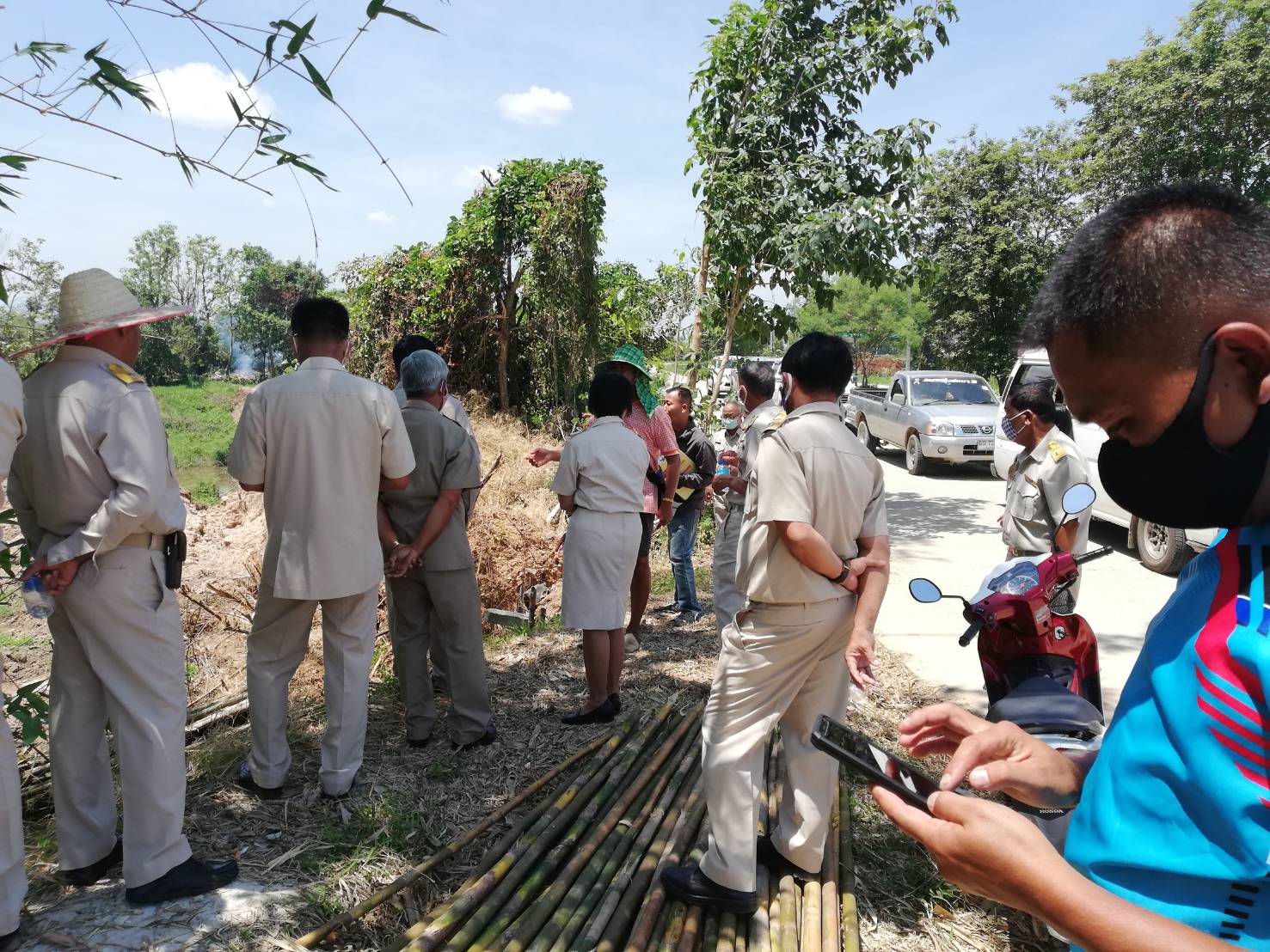 ในวันเดียวกันสมาชิกสภา อบต.แม่สาว ทั้งหมด มี นายสมชาย สุวรรณ์ นายก อบต.แม่สาว น.ส.เพ็ญรุ่ง นามอภิรมณ์ ปลัด อบต.แม่สาว นายพลากร สุวรรณรัตน์ ผอ.กองช่าง และเจ้าที่ที่เกี่ยวข้องได้ลงตรวจสอบพื้นที่หลายพื้นที่ใน ต.แม่สาว จากการตรวจพื้นที่ได้พบเจ้าของสวนส้มรายหนึ่ง กำลังควบคุมดูแลรถแบ็คโฮ 2 คัน ที่กำลังทำการขุดบ่ออยู่ จึงได้สอบถามว่า ทำไมไม่ขออนุญาตในการขุดให้ถูกต้องตามกฎหมาย และก็ทำการขุดลึกเกินกว่าที่กฎหมายกำหนด และที่สำคัญจะต้องขออนุญาตก่อน