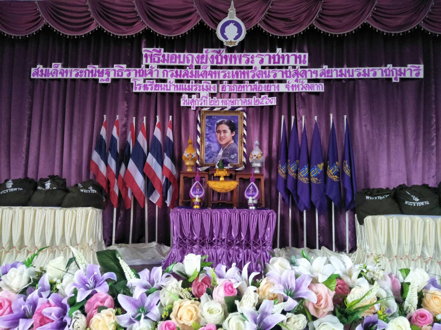 นายสมชัย กิจเจริญรุ่งโรจน์ รองผู้ว่าราชการจังหวัดตาก เป็นประธานในพิธีรับมอบถุงยังชีพพระราชทาน สมเด็จพระกนิษฐาธิราชเจ้า กรมสมเด็จพระเทพรัตนราชสุดา ฯ สยามบรมราชกุมารี ณ หอประชุมโรงเรียนแม่ระเมิง อำเภอท่าสองยาง จังหวัดตาก โดยประกอบพิธีเปิดกรวยกระทงดอกไม้ธูปเทียนแพ เบื้องหน้าพระฉายาลักษณ์ สมเด็จพระกนิษฐาธิราชเจ้า กรมสมเด็จพระเทพรัตนราชสุดา ฯ สยามบรมราชกุมารี และกล่าวสำนึกในพระมหากรุณาธิคุณ จากนั้นรองผู้ว่าราชการจังหวัดตากพร้อมด้วยนายอำเภอท่าสองยางและหัวหน้าส่วนราชการ เชิญถุงพระราชทานมอบให้แก่นักเรียน จำนวน 200 ชุด