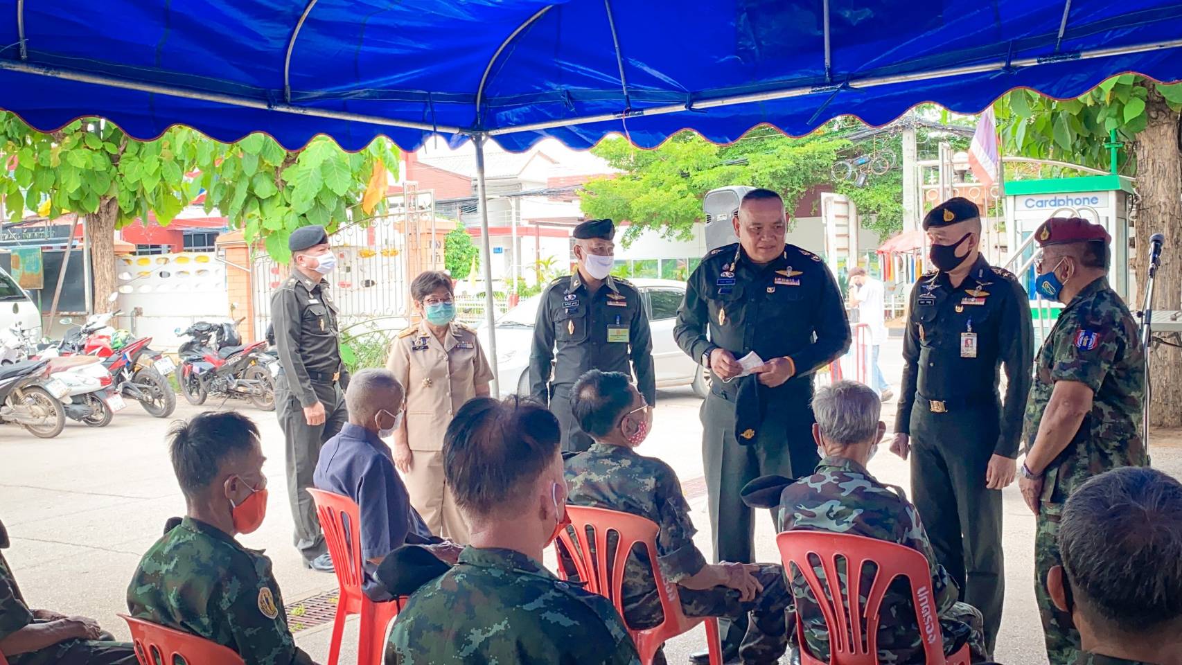 อีกทั้งได้พบปะชมรมทหารกองหนุนอำเภอแม่ทะ จำนวน 21 ราย ซึ่งในช่วงหนึ่งเคยรับใช้ชาติด้วยความภาคภูมิใจ พร้อมทั้งมอบถุงยังชีพให้แก่ ทหารกองหนุนที่มีฐานะยากจน จำนวน 3 ราย ได้แก่