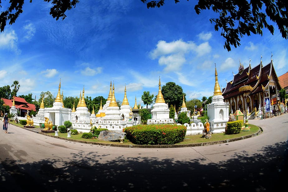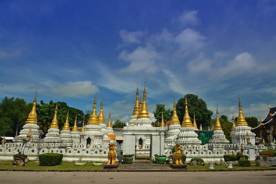 มีเชื่อกันว่าหากใครได้นับเจดีย์ครบ 20 หลัง ถือว่าเป็นคนมีบุญ จะพบกับความโชคดี ต้องลองมาพิสุตรกัน “วัดพระเจดีย์ซาวหลัง” ตั้งอยู่ที่ บ้านวังหม้อ ตำบลต้นธงชัย อำเภอเมือง จังหวัดลำปาง ลักษณะการก่อสร้างเป็นศิลปะแบบพม่าผสมศิลปะล้านนา องค์ใหญ่สุดอยู่ตรงกลาง แวดล้อมด้วยเจดีย์อีก 19 องค์ รวมกันแล้วเป็น 20 องค์ ชาวบ้านจึงเรียกว่าวัดเจดีย์ซาวหลัง โดยคำว่า “ซาว” เป็นภาษาเหนือแปลว่า “ยี่สิบ” ด้านหน้าของเจดีย์แต่ละองค์ทำเป็นซุ้ม มีพระพุทธรูปประดิษฐานอยู่ข้างใน