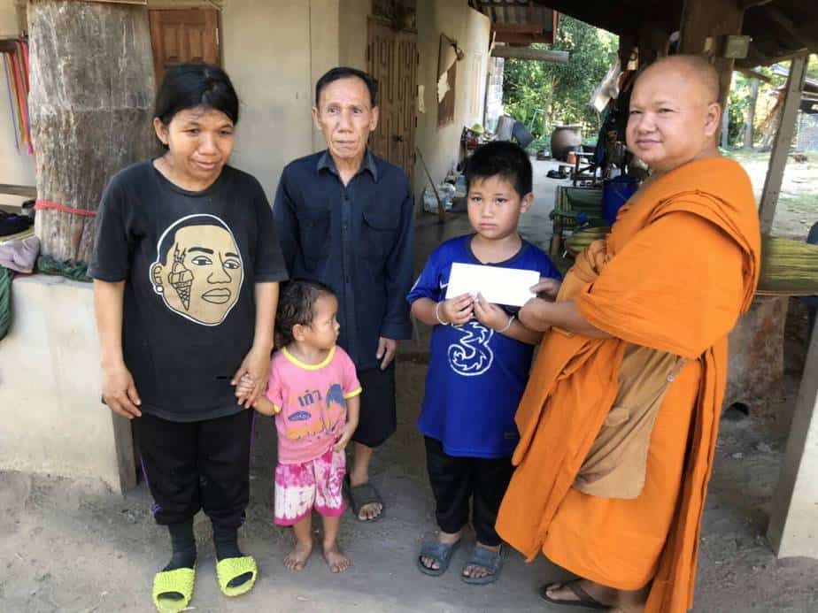 ทางด้านพระครูพิศาลออรถกิจ เจ้าอาวาสวัดพระธาตุไฮสร้อย เจริญพรว่า วันแม่ปี 2563ที่ผ่านมาได้เดินทางไปสำนักสงฆ์บ้านโป่งได้ผ่านหมู่บ้านแห่งนี้ ได้พบครอบครัวของน้องมังกร ซึ่งมีฐานะยากจนมากจน แม้แต่ รถจักรยานยนต์ และรถจักรยาน ก็ไม่มี เวลาจะเดินทางไปไหนก็ลำบาก อาตมาภาพอดที่จะสงสารไม่ได้ อาตมาภาพจึงเดินทางกลับมาวัด เพื่อรวบรวมของใช้ พร้อมมอบเป็นทุนการศึกษาช่วยเหลือครอบครัวของน้องมังกร