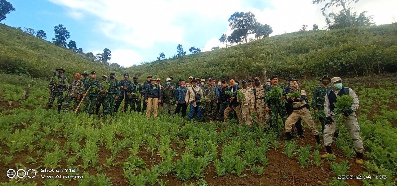ล่าสุดนาย ส่งปลัดฝ่ายความมั่นคง พร้อม อส. สนธิกำลังกับ ตำรวจ ทหาร ตชด.ลุยตัดราบคาบแล้ว เมื่อวันที่ 4 ธันวาคม 2563 เวลา 08.30 น. ที่ผ่านมา ภายใต้การอำนวยการของ ว่าที่ร้อยตรี นพรัตน์ ศุภกิจโกศล นายอำเภอปาย ได้มอบหมายให้ นายภูรีภัทร พิพัฒน์พงศ์ธร ปลัดอำเภอหัวหน้าฝ่ายความมั่นคงอำเภอปาย นายพิเชษฐ พุ่มนวน ปลัดอำเภอฝ่ายความมั่นคงอำเภอปาย นำกำลังสมาชิกกองอาสารักษาดินแดนอำเภอปายที่ 4 จำนวน 6 นาย บูรณาการร่วมกับ เจ้าหน้าที่ตำรวจภูธรปาย เจ้าหน้าที่ตำรวจตระเวนชายแดน ที่ 336 เจ้าหน้าที่ทหาร เจ้าหน้าที่ป่าไม้ กำนัน ผู้ใหญ่บ้าน ผู้ช่วยผู้ใหญ่บ้าน ตำบลเวียงเหนือ ร่วมกัน ตัด ฟัน ทำลายพืชเสพติด (ฝิ่น) จำนวน 2 แปลง ในพื้นที่บ้านหัวแม่เมือง หมู่ที่ 7 ตำบลเวียงเหนือ อำเภอปาย จังหวัดแม่ฮ่องสอน