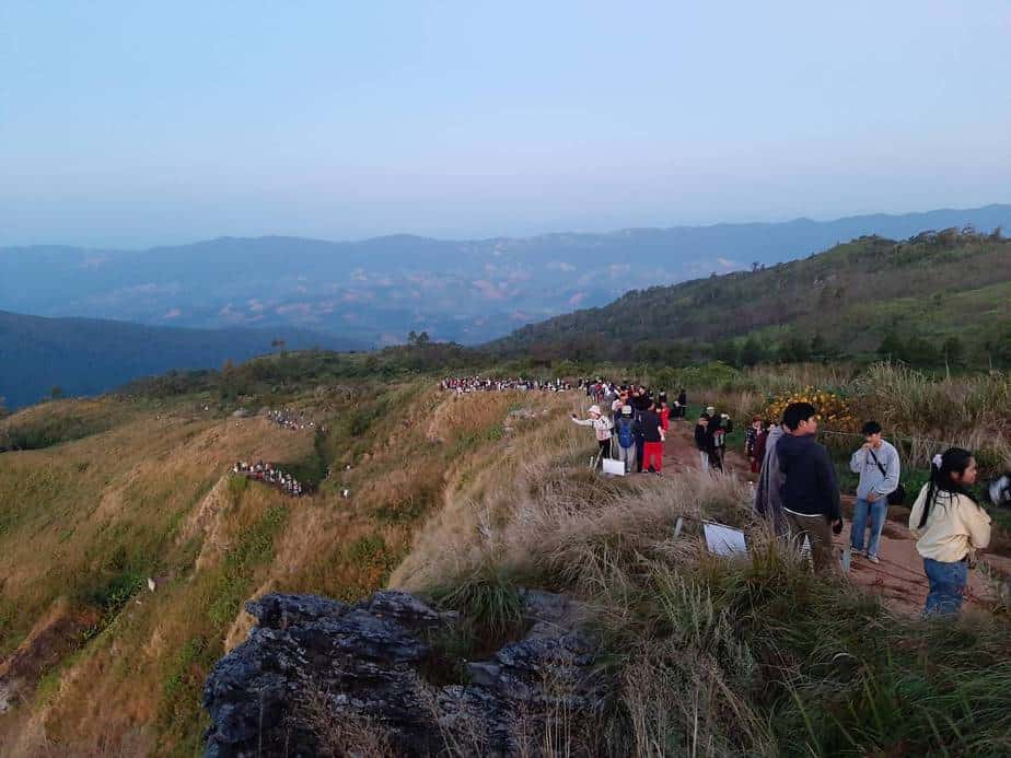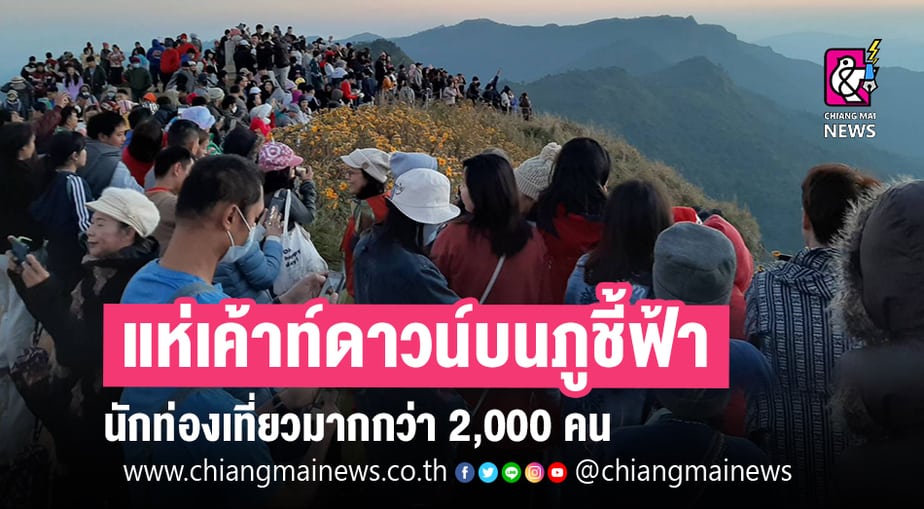 เช้านี้ยอดภูชี้ฟ้ามีอุณหภมิประมาณ 7 องศา ท้องฟ้าเปิด มองเห็นทะเลหมอกได้ชัด มีนักท่องเที่ยวเลือกเป็นจุกเคาท์ดาวน์ส่งท้ายปีเก่าต้อนรับปีใหม่ประมาณ 2,000 คน โดยมีเจ้าหน้าที่จากทางอุทยาน ทหาร ตำรวจ รพ.เทิง รพ.สต.ใกล้เคียง แขวงทางหลวงเชียงรายที่2 และอบต.ตับเต่า มาคอยอำนวยความสะดวกบริการนักท่องเที่ยว ท่ามกลางมาตรการคัดกรองที่เข้มงวด