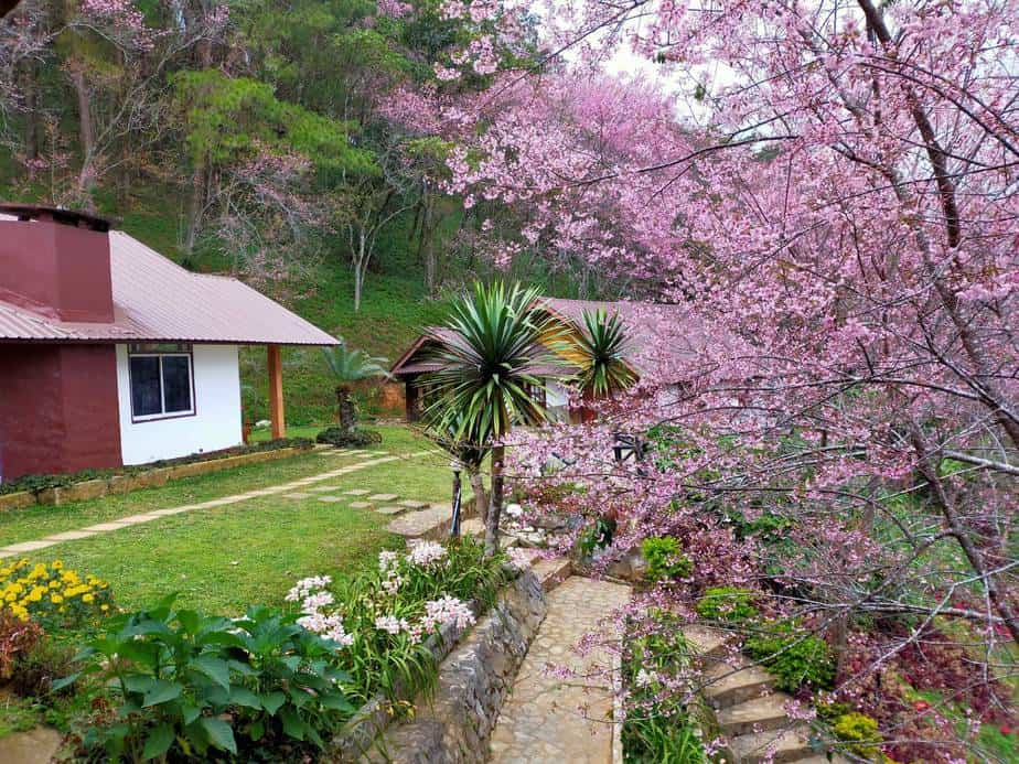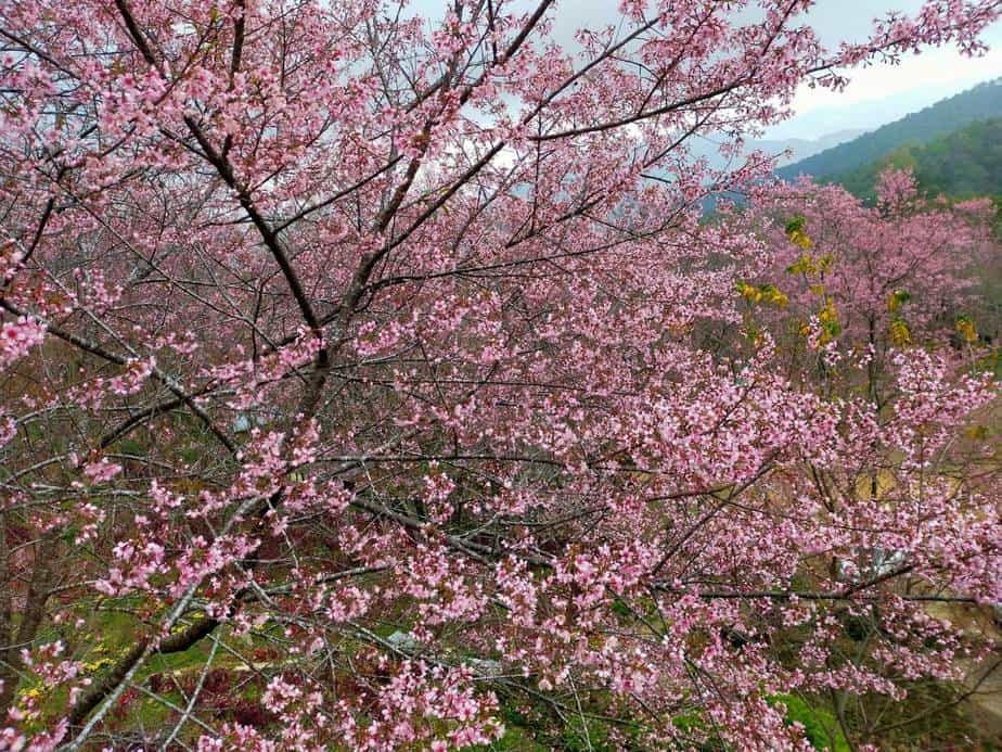 ช่วงนี้อุณหภูมิลดต่ำ ทำให้ดอกไม้เมืองหนาวทะยอยเบ่งบานอวดสายตานักท่องเที่ยว ที่หน่วยจัดการต้นน้ำหงาว-งาว บ้านร่มฟ้าทอง ม.18 ต.ปอ อ.เวียงแก่น ซึ่งเป็นอีกหนึ่งเส้นทางขึ้นภูชี้ฟ้า มีดอกนางพญาเสือโคร่งหรือซากุระเมืองไทยเริ่มเบ่งบานอวดสายตานักท่องเที่ยวบ้างแล้ว คาดว่าประมาณกลางเดือน ม.ค. จะบานเต็มพื้นที่