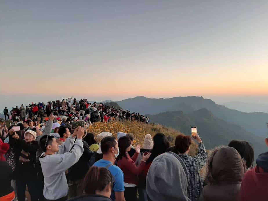 วันที่ 1 ม.ค. 64 นักท่องเที่ยวพากันขึ้นดอยชมทะเลหมอกที่ภูชี้ฟ้าตั้งแต่เช้ามืด ปีนี้นักท่องเที่ยวมีไม่มากเหมือนทุกปีเพราะสถานการณ์การแพร่ระบาดของไวรัสโควิด-19 แต่ที่ภูชี้ฟ้าก็ยังเป็นหนึ่งในที่ท่องเที่ยวที่เป็นที่นิยมอยู่