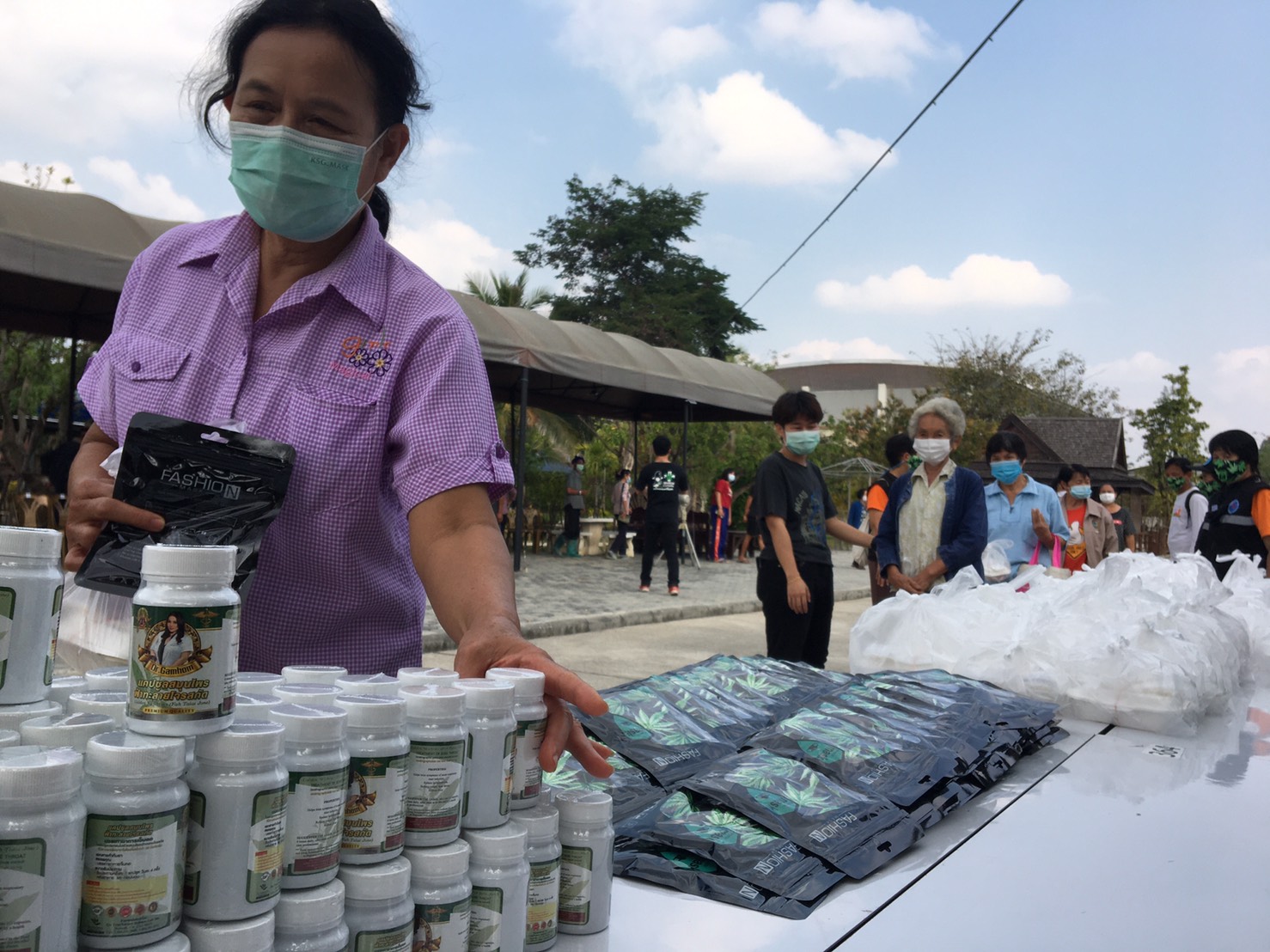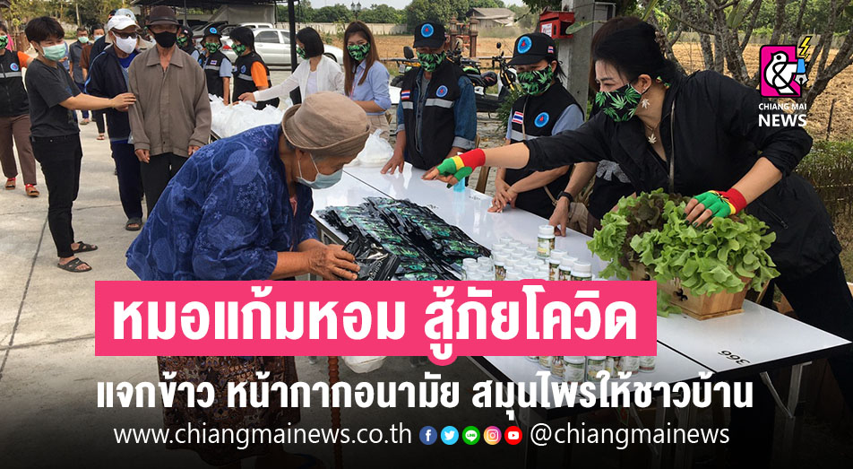 เมื่อเวลา 11.30 น. วันที่ 8 ม.ค. 2564 ที่อโรคยา เดอสารภี สถานที่บำบัดดูแลผู้ป่วยโรคมะเร็ง บ้านท่าต้นกว๋าว ต.ชมพู อ.สารภี จ.เชียงใหม่ ดร.แก้มหอม ณ ล้านช้าง ผู้อำนวยการอโรคยา เดอ สารภี ในนามแม่มดกัญชานักวิจัยชื่อดังของไทย ทำข้าวกระเพราไข่ดาวกว่า 100 กล่อง แจกมื้อเที่ยงให้กับชาวบ้าน พร้อมแจกหน้ากากอนามัยนาโน และสมุนไพรฟ้าทะลายโจรสกัดให้กับชาวบ้านในพื้นที่ ส่วนใหญ่เป็นผู้สูงอายุและตกงานเพื่อบรรเทาความเดือดร้อน ในฐานะบ้านใกล้เรือนเคียง โดยมีการเว้นระยะห่าง ตรวจวัดไข้ ให้สวมหน้ากากอนามัย โดยให้ชาวบ้านลุกมาหยิบอาหารกันเอง และให้กลับบ้านได้เลย เป็นการแสดงความมีน้ำใจกับเพื่อนบ้าน