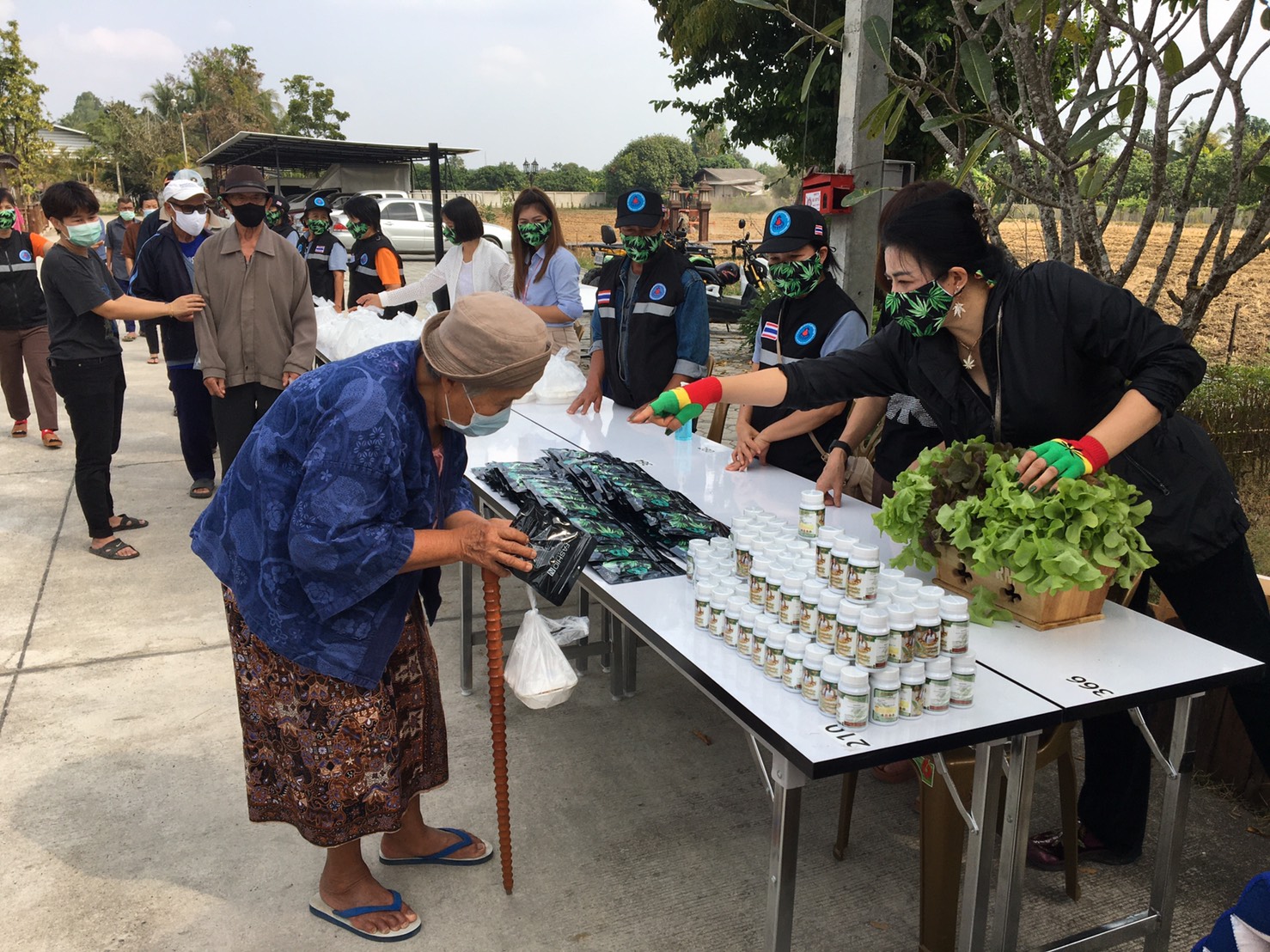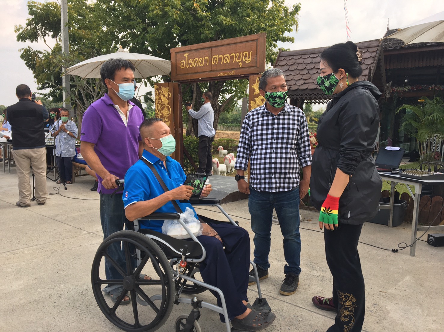 และวันนี้มอบหน้ากาอนามัย จากนาโน มีขอบเหล็กและหายใจสะดวกเพราะเราประเทศไทยเป็นประเทศร้อน หน้ากากจะเย็นหายใจสบายและปลอดภัยจากโควิด-19 และวันนี้แจกข้าวช่วยเหลือชาวบ้าน เริ่มต้น 100 กล่อง และต่อไปอาจจะเพิ่มให้มากถึง 500 กล่อง
