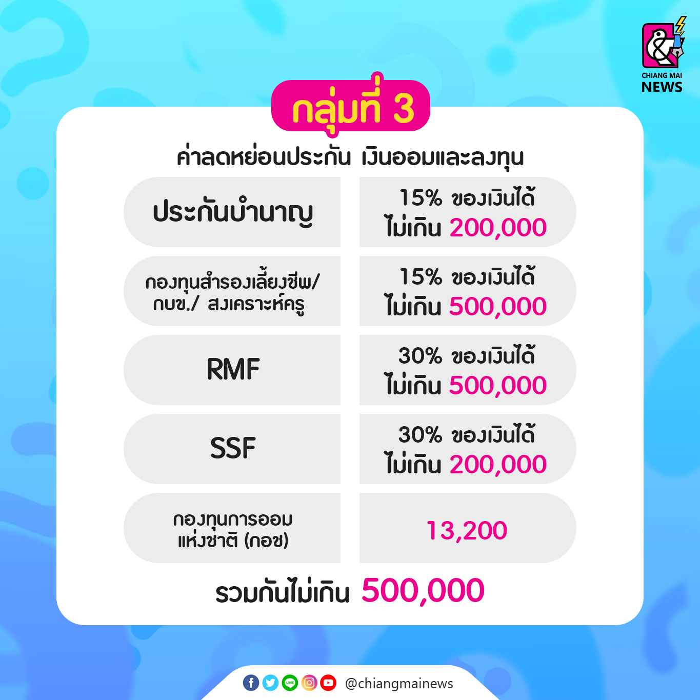 - (1)+(2)+(3) รวมกันไม่เกิน 500,000 บาท