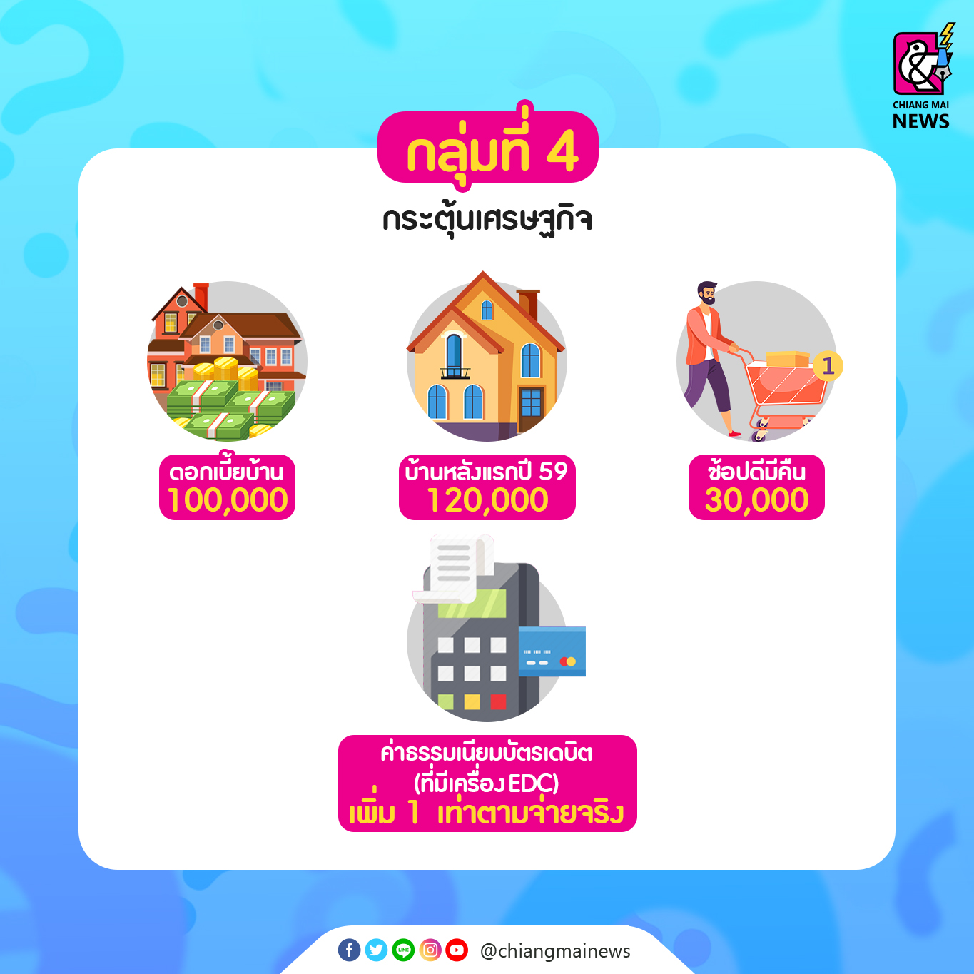 เป็นสิทธิประโยชน์ทางภาษีที่ได้เพิ่มสำหรับกรณีคนทำธุรกิจ ที่มีการจ่ายค่าธรรมเนียมในการรับชำระเงินด้วยบัตรเครดิต ตั้งแต่ช่วง 1 พ.ย. 2559 – 31 ธ.ค. 2564 ซึ่งกลุ่มนี้จะเป็นเฉพาะกลุ่มที่มีรายได้ประเภทที่ 5-8 (ค่าเช่า วิชาชีพอิสระ รับเหมา และ ธุรกิจอื่นๆ) จำนวนไม่เกิน 30 ล้านบาทต่อปี ถึงจะได้รับสิทธิประโยชน์นี้ไป - ช้อปดีมีคืน ไม่เกิน 30,000 บาท ซื้อสินค้าและบริการได้ 3 กลุ่ม ตั้งแต่วันที่ 23 ต.ค. – 31 ธ.ค. 2563 ได้แก่