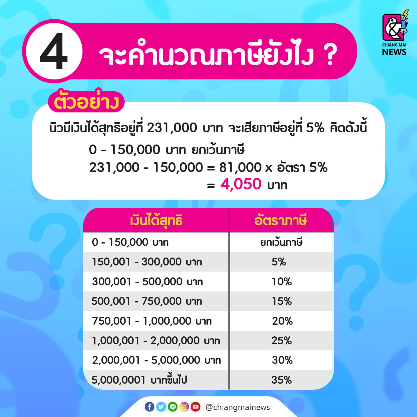 หลายคนมีข้อสงสัยเกี่ยวกับการยื่นภาษี ไม่ว่าจะเป็เงินเดือนเท่าไหร่ต้องเสียภาษี แล้วต้องไปเสียภาษีประเภทไหน หรือที่หลาย ๆ คนอยากรู้มากที่สุด คือการคำนวณภาษีที่ต้องจ่าย วันนี้เชียงใหม่นิวส์จะมาไขข้องสงสัย รวมทุกคำถามเกี่ยวกับการยื่นภาษี ใครที่ไม่เข้าใจส่วนไหนหาคำตอบกันได้ที่นี่เลย