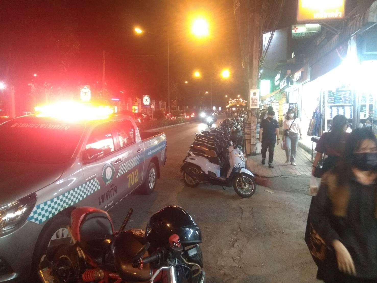 เจ้าหน้าที่เทศกิจพร้อมรถสายตรวจ 702 สำนักงานเทศกิจ เทศบาลนครเชียงใหม่ กวดขันการตั้งวางจำหน่ายสินค้า การจอดรถยนต์​ จักรยานยนต์ ป้าย​ แขวนสูง บนฟุตบาททางเท้า​ ถนนห้วยแก้ว ให้มีความปลอดภัย และไม่เป็นการเกะกะกีดขวางการใช้ทางเท้าของประชาชน
