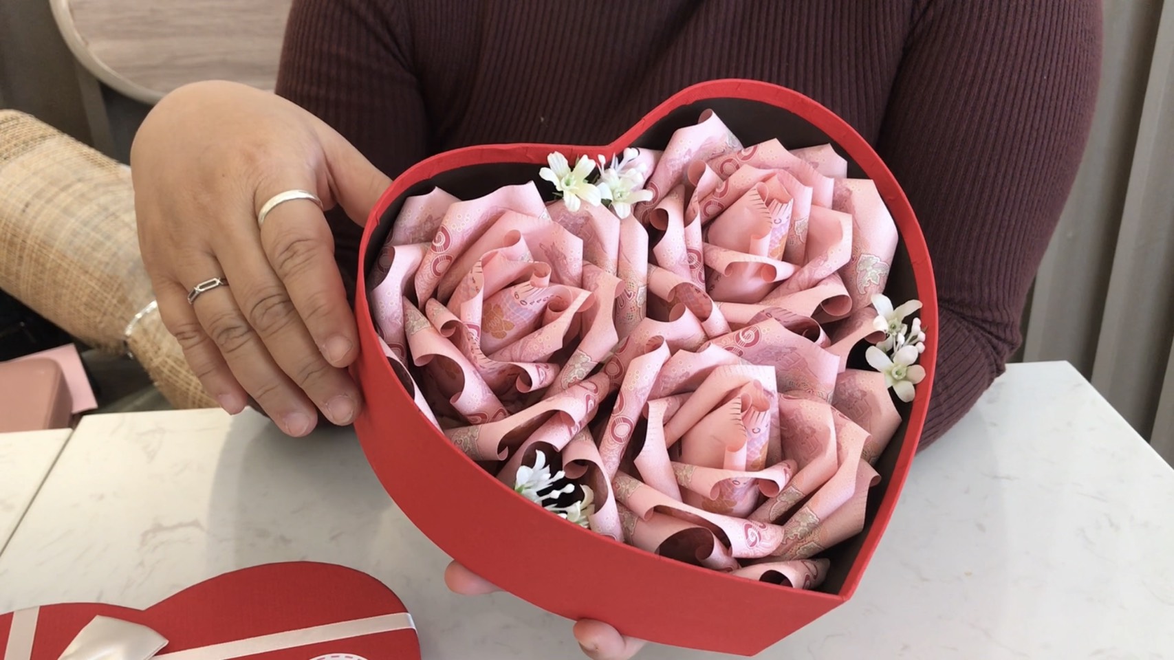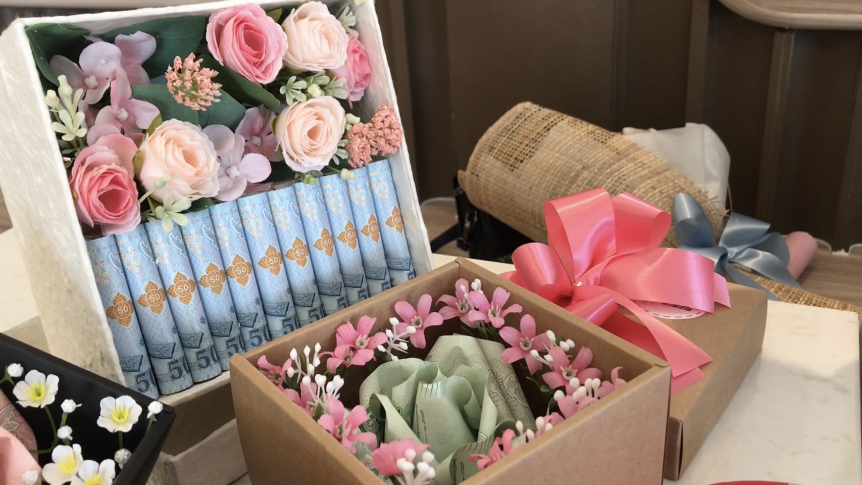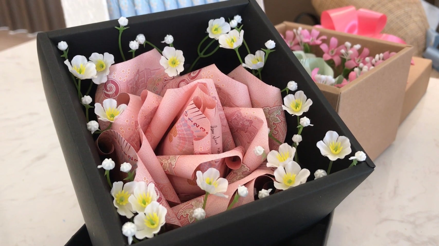 โดยของขวัญดังกล่าวที่เหมาะกับกระแสในช่วงนี้ เห็นจะไม่พ้น ช่อดอกไม้ หรือกล่องดอกไม้ที่ทำจากธนบัตรชนิดต่าง ๆ ที่ทราบมาว่า กำลังเป็นที่นิยม มียอดออเดอร์ ที่เข้ามาอย่างต่อเนื่องจนผู้รับทำมีงานล้นมือในช่วงนี้ เนื่องจากของขวัญชิ้นนี้มีความพิเศษตรงที่มันมีมูลค่า และเมื่อนำมาตกแต่งเป็นช่อดอกไม้หรือกล่องของขวัญที่บรรจุเป็นดอกไม้ธนบัตรแล้วนั้น ยิ่งสวยงาม จนต้องบอกว่า หากนำไปมอบให้ใครแล้วไม่รับก็ถือว่าพลาดเลยทีเดียว