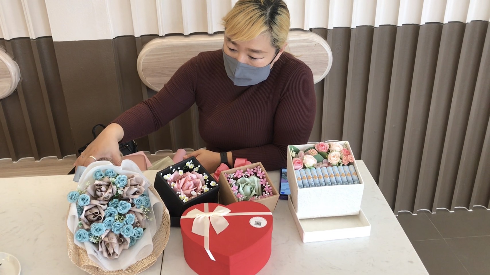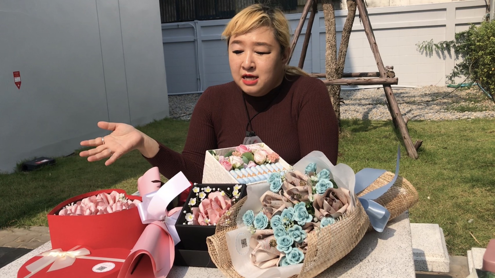 สำหรับในเรื่องของราคา ก็จะเริ่มต้นที่ราคา 30 บาท และขึ้นอยู่กับว่าลูกค้าจะเลือกแบบอย่างไร โดยหากเป็นช่อก็เริ่มต้นที่ 100 บาท และช่อที่ทำตกแต่งแบบวาเลนไทน์ตอนนี้ก็อยู่ที่ราคาช่อละ 150 บาท ส่วนที่นิยมในช่วงวาเลนไทน์ก็จะเป็นแบบกล่องของขวัญ ที่สามารถจัดส่งง่าย และคนที่ได้รับก็เซอร์ไพรส์มากกว่า และช่อดอกไม้ใหญ่สุดที่มีดอกไม้ 100 ดอก ที่ตนเคยทำราคาจะอยู่ที่ 2,300-2,500 บาท ขึ้นอยู่กับวัสดุที่ลูกค้าเลือกด้วย นอกจากนี้ ทางตนจะไม่ใช้วัสดุที่เป็นอันตรายต่อธนบัตรมากและงานที่เป็นแบบพับก็จะใช้ลวดบิด โดยเวลาคนที่แกะก็สามารถคลายลวด คลี่ธนบัตรแล้วสามารถนำธนบัตรนั้นไปใช้ได้ และจะไม่ใช้เข็มหมุด กาว หรือแม็กเย็บ เพื่อป้องกันความเสียหายกับธนบัตร และให้ธนบัตรสามารถนำไปใช้ได้ตามปกติ และไม่รับทำธนบัตรปลอม หรือแบงค์กาโม่ เพื่อคงภาพลักษณ์ของร้าน และต้องเป็นธนบัตรจริงที่สามารถใช้ชำระได้ตามกฎหมายเท่านั้น