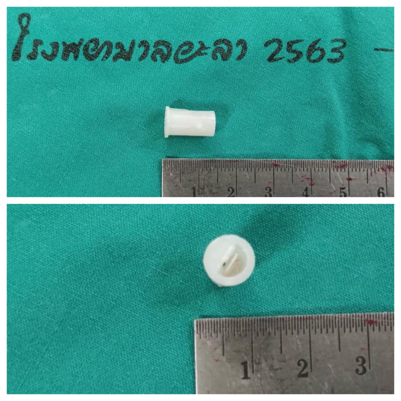 จากการตรวจสอบพบว่า เป็นนกหวีดเป่าลมที่ติดอยู่กับลูกโป่ง ขนาดความยาวประมาณ 1.5 เซนติเมตร และเส้นผ่านศูนย์กลางประมาณ 1 เซนติเมตรเท่านั้น ซึ่งแพทย์เตือนให้พ่อแม่ผู้ปกครองระมัดระวังของเล่นบางชนิด ไม่เหมาะกับเด็กในวัยนี้ เพราะอาจเกิดกรณีสำลัก หากปฐมพยาบาลไม่ถูกวิธี หรือส่งรักษาไม่ทันเวลา อาจทำให้เด็กเสียชีวิตได้