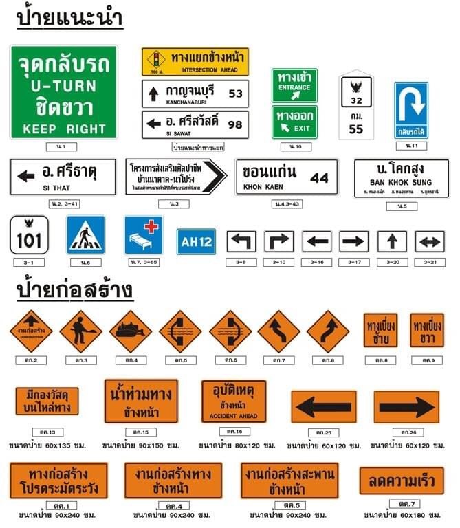 – ป้ายทางคดเคี้ยว เริ่มจากซ้ายทางข้างหน้าเป็นทางคดเคี้ยว โดยเริ่มจากทางซ้ายและลดความเร็วขับรถชิดซ้ายด้วยความระมัดระวัง