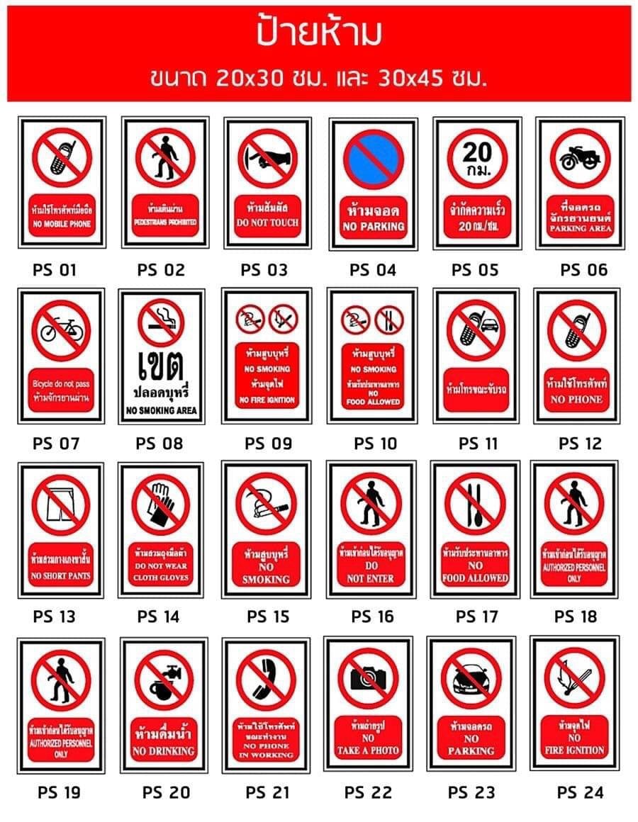 – ป้ายห้ามเข้า ห้ามรถเข้าทุกชนิดในเขตติดตั้งป้าย