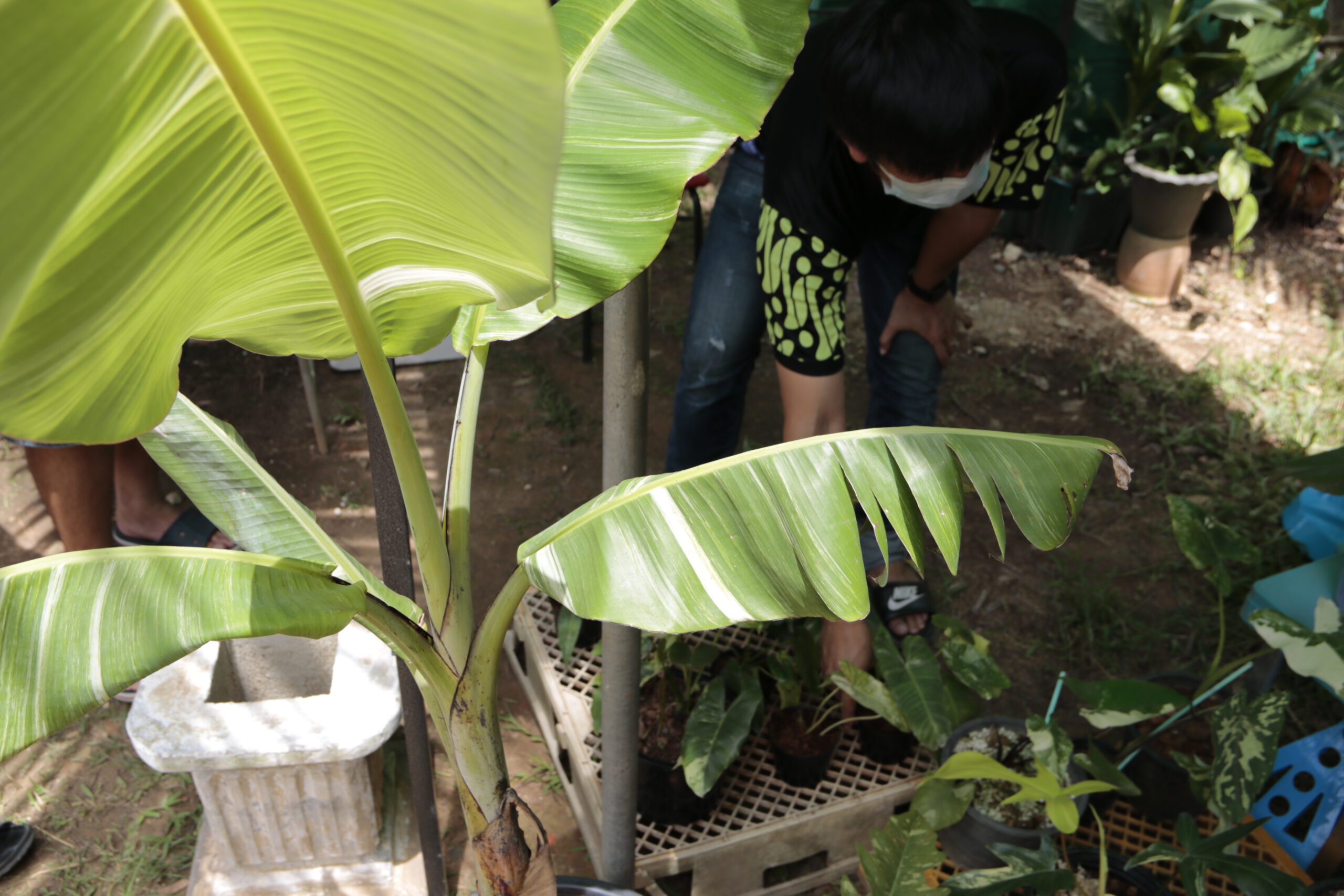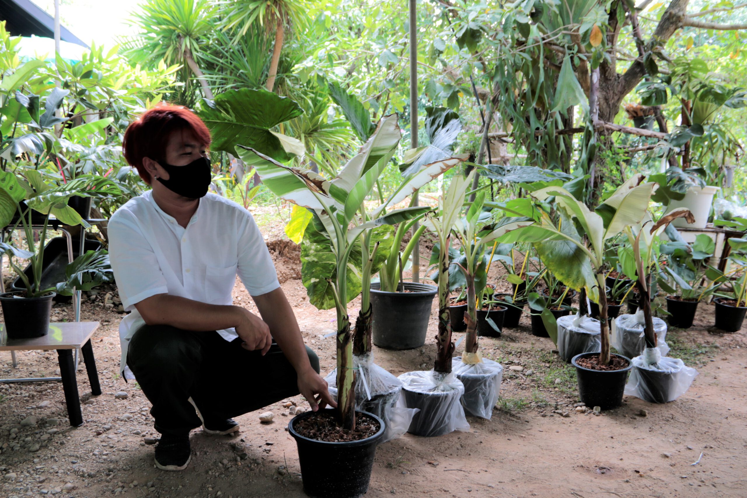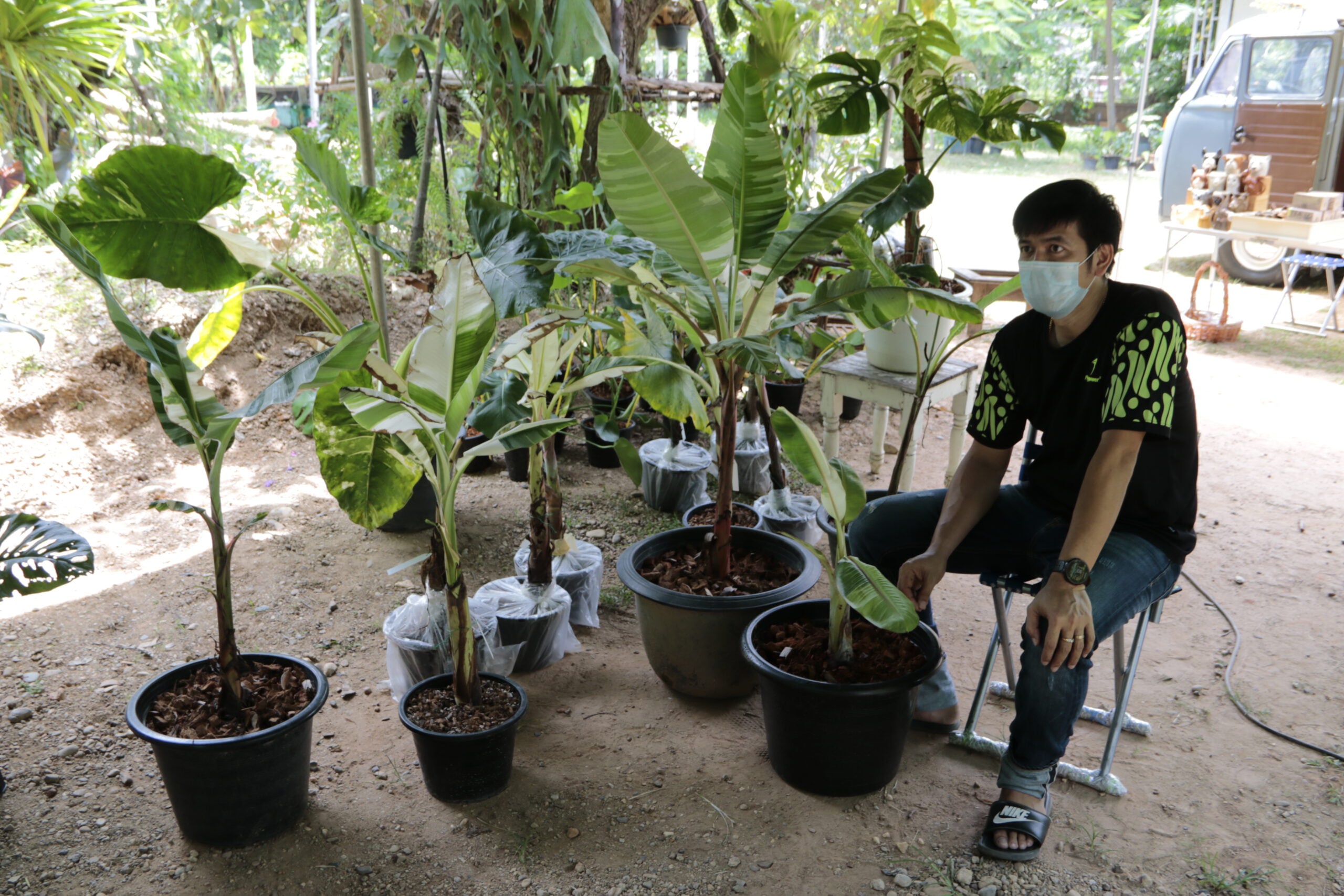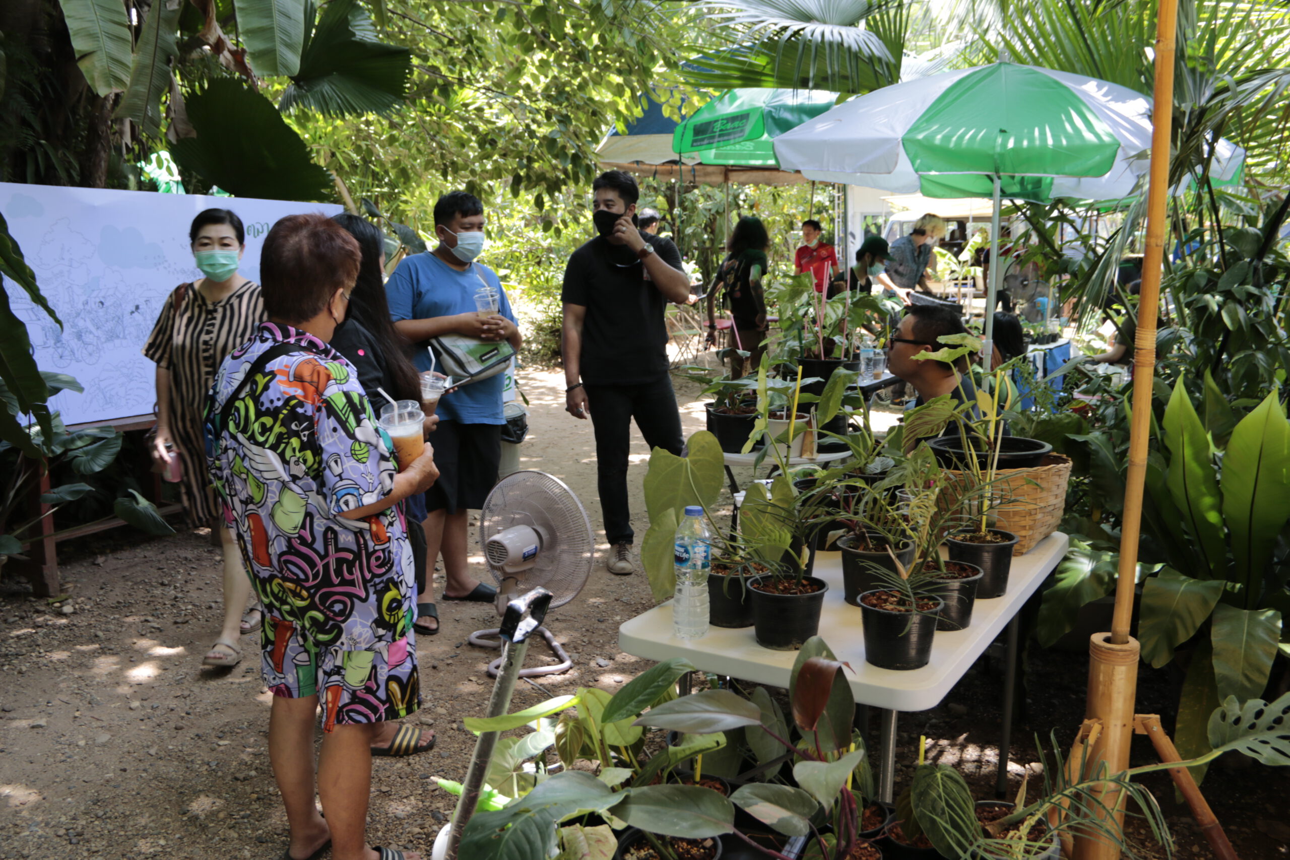 อย่างไรก็ตาม ช่วงนี้กระแสไม้ใบสีด่าง กำลังมาแรง เลยถือโอกาสชักชวนเพื่อนๆที่ได้รับผลกระทบจากโควิทในอาชีพหลักของตัวเองมาตั้งร้านขายต้นไม้ในบริเวณลานกิจกรรมของร้านกาแฟโดยไม่คิดค่าเช่า ซื้อขายแลกเปลี่ยนต้นไม้กันในกลุ่มและในโลกออนไลน์เป็นช่องทางหารายได้อีกหนึ่งช่องทางสำหรับเพื่อนๆที่รักต้นไม้เช่นกัน รวมทั้งต้นไม้ใบด่าง เช่นกล้วยที่มีอยู่ที่ร้านมานานด้วย ซึ่งเริ่มเปิดร้านจำหน่ายซื้อขายแลกเปลี่ยนต้นไม้กัน ตั้งแต่วันที่ 3 ก.ค.2564 ที่ผ่านมา และวันนี้เป็นวันที่ 2 ก็เริ่มมีผู้สนใจเดินทางมาเปิดร้านกันจำนวนมากขึ้น และทางร้าน ยินดีหากทางสนใจมาร่วมแลกเปลี่ยนไม้ระดับใบด่าง