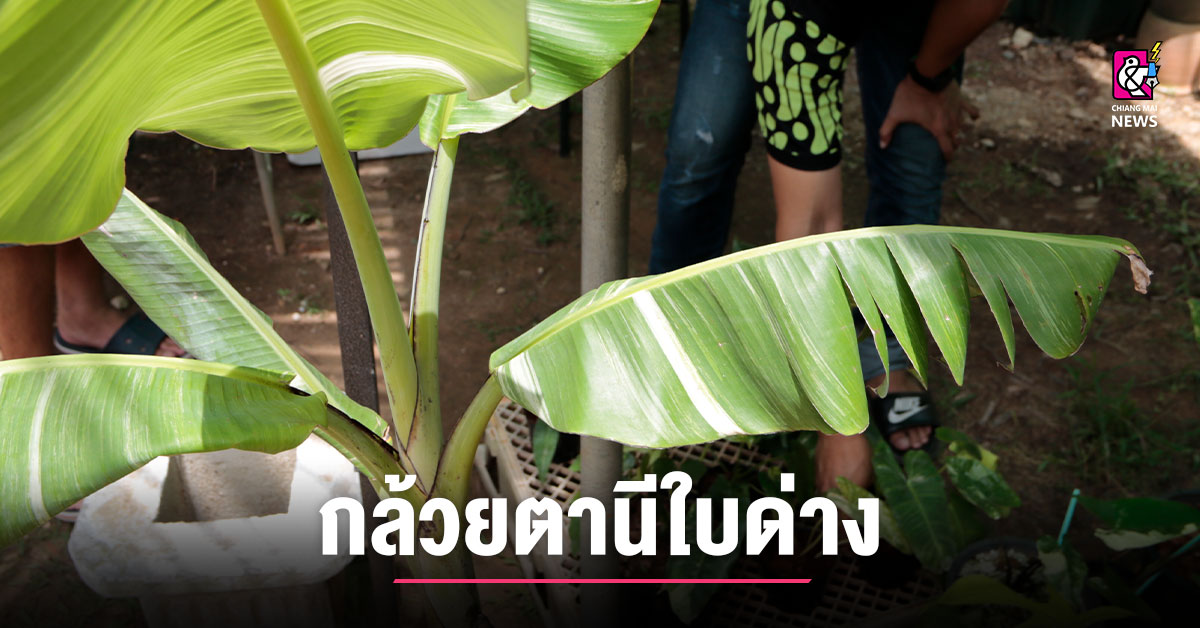 เมื่อวันที่ 4 ก.ค.2564 ผู้สื่อข่าวได้รับแจ้งชาวบ้านว่า พบต้นกล้วยตานีใบด่าง ยังออกลูกเป็นด่างทั้งลูกและใบ ลำต้นสูงท่วมหัว ประมาณ 2 เมตร พบที่บ้าน เลขที่ 110/3 หมู่ 1 บ้านฟ้ามุ้ย ต.หนองจ๊อม อ.สันทราย จ.เชียงใหม่ ผู้สื่อข่าวเดินทางเข้าพบ นายนิรุตย์ คำชัยวงค์ หรืคุณเอ เจ้าของร้านกาแฟ เพื่อนป่า คาเฟ่ บ้านฟ้ามุ้ย ต.หนองจ๊อม อ.สันทราย จ.เชียงใหม่ พาผู้สื่อข่าวไปดู ต้นกล้วยตานี ใบด่าง ที่ปลูกตกแต่งภายในร้าน ซึ่งกำลังออกลูกผิวกล้วยมีลักษณะด่างสีทอง สลับเขียว ซึ่งจากการสังเกตกล้วยตานี ต้นนี้ ลำต้นสูงท่วมหัว ประมาณ 2 เมตร