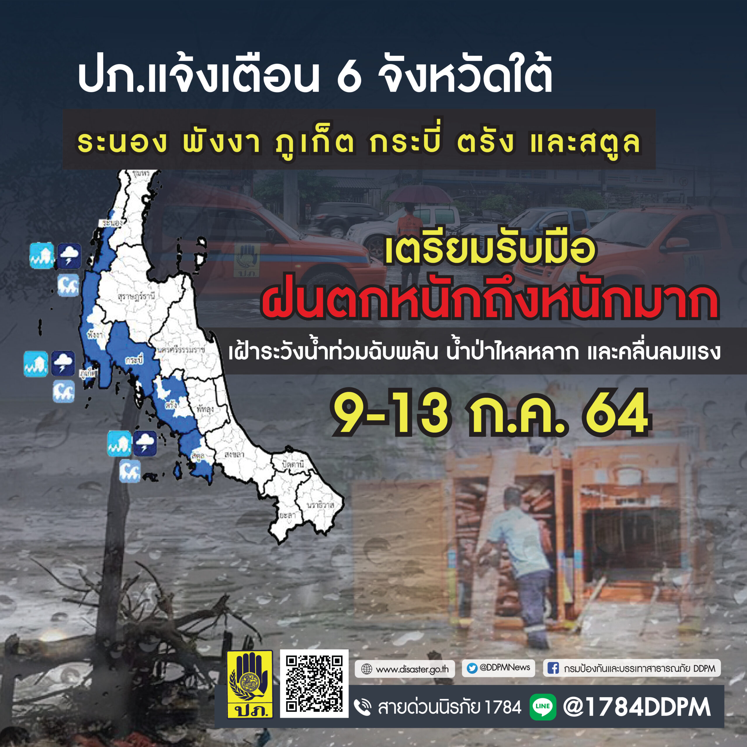 กระทรวงการคลัง ทั้งการชดเชยความเสียหายของบ้านเรือนเป็นวัสดุก่อสร้างหรือจ่ายเงินช่วยเหลือตามความเหมาะสม ท้ายนี้ประชาชนสามารถแจ้งเหตุและขอความช่วยเหลือทางไลน์ “ปภ.รับแจ้งเหตุ 1784”
