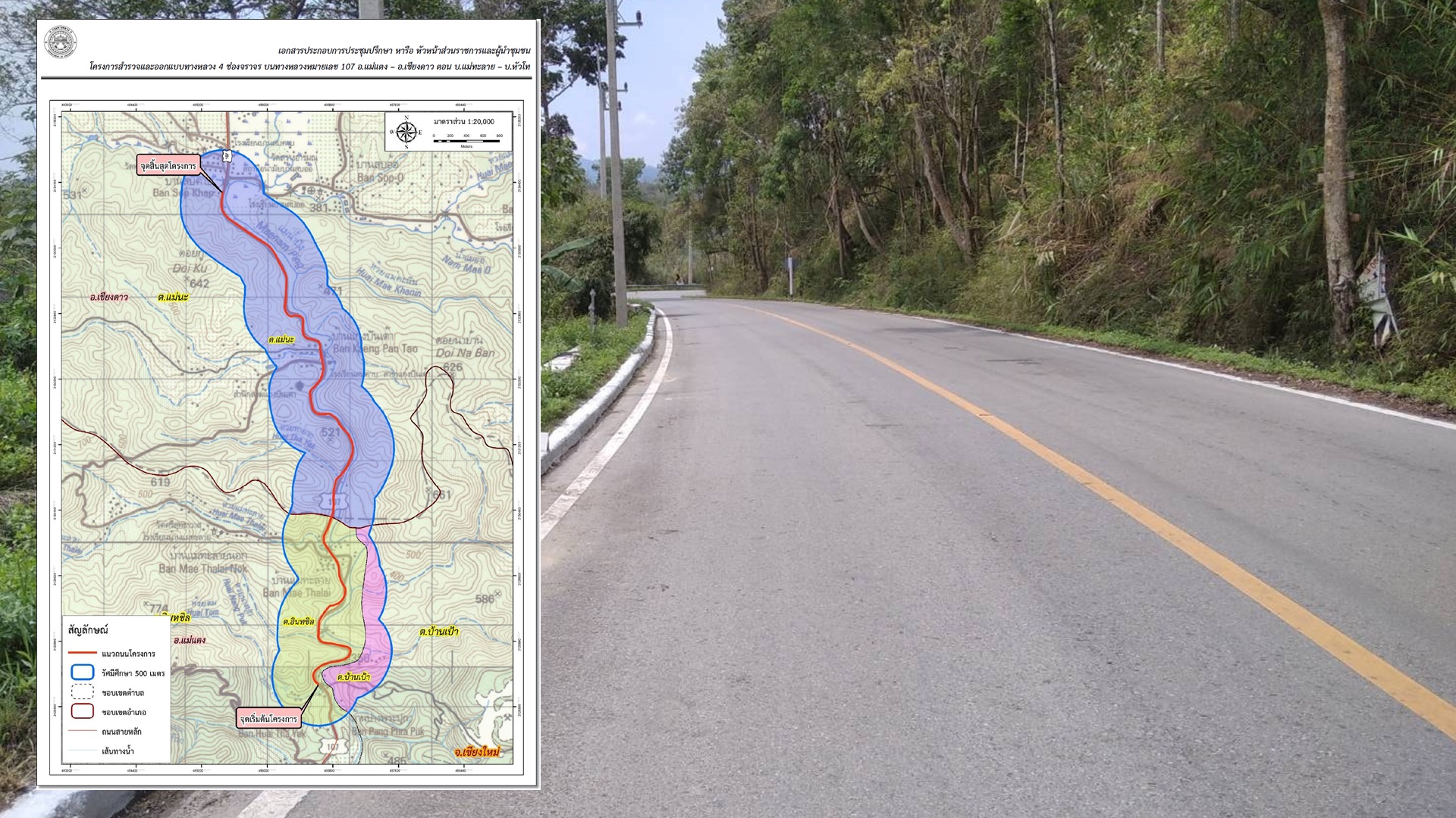 ทั้งนี้เพื่อเปิดโอกาสให้มีส่วนร่วมในโครงการของทุกภาคส่วน ทั้งหน่วยงานราชการที่เกี่ยวข้อง องค์กรปกครองส่วนท้องถิ่น ผู้นำชุมชน และประชาชน ได้รับทราบข้อมูล การดำเนินโครงการที่ถูกต้อง รวมทั้งรับฟังความคิดเห็น ข้อเสนอแนะที่เป็นประโยชน์ต่อการพัฒนาโครงการนี้ด้วย ทางหลวง 107 อ.แม่แตง – อ.เชียงดาว ตอน บ.แม่ทลาย – บ.หัวโท มีสภาพพื้นที่โดยทั่วไประหว่างกม.55+600 – กม.64+000 แนวเส้นทางลัดเลาะไปตามเส้นชั้นความสูง เลียบตีนเขาซึ่งอยู่ด้านซ้ายทางตลอดแนวทางตามโครงการฯ โดยมีแม่น้ำปิงอยู่ทางด้านขวาของแนวทางเป็นช่วงๆ