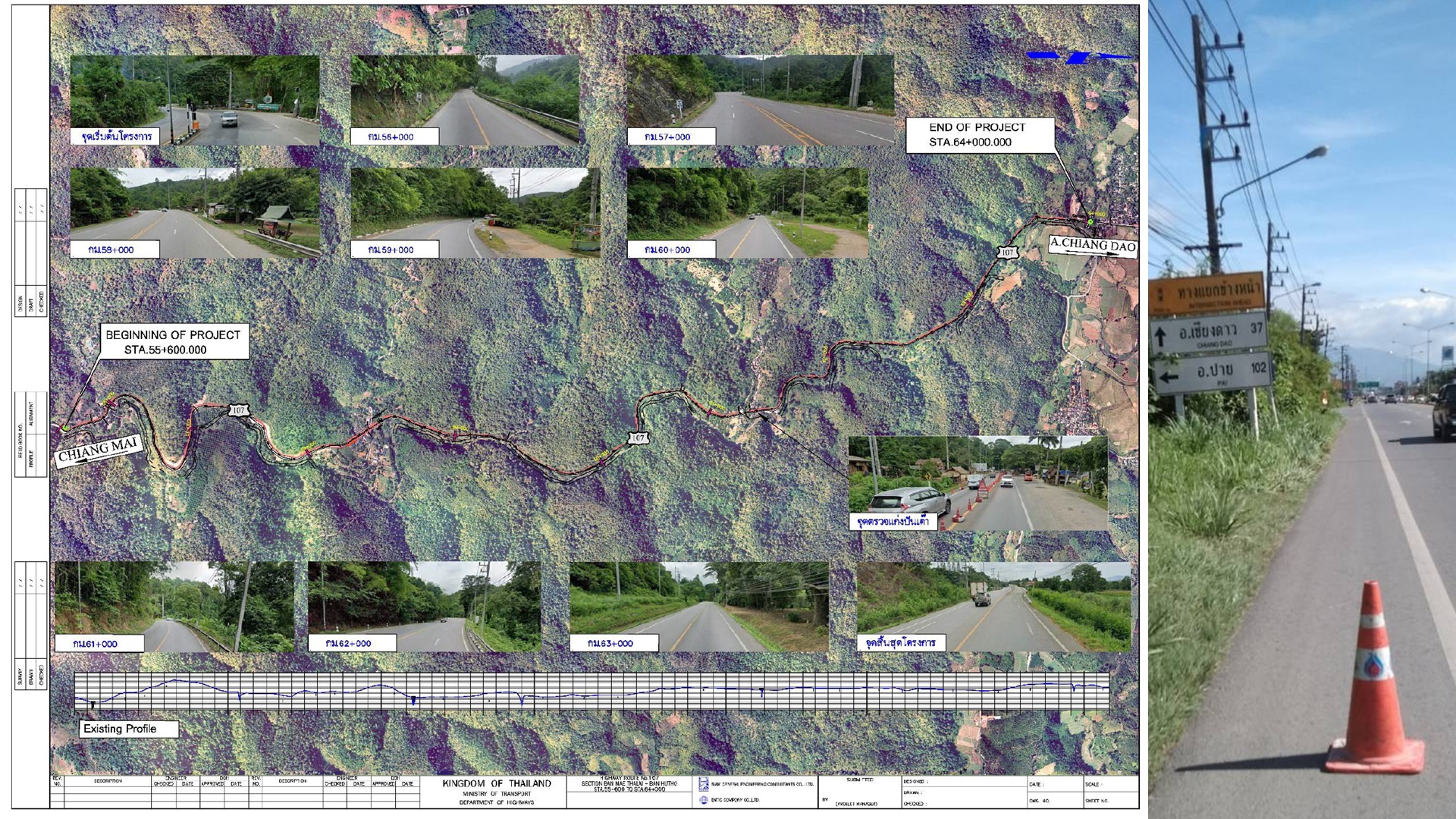 จากการสำรวจสภาพผิวทางโดยทั่วไปอยู่ในเกณฑ์ดี การใช้ทางในปัจจุบันในบางช่วงเป็นจุดที่ทัศนียภาพในการขับขี่ไม่สู้ดีนัก จึงทำให้เกิดอุบัติเหตุอยู่บ่อยครั้ง สภาพพื้นที่สองข้างทาง ผ่านพื้นที่ป่าเขา พื้นที่เกษตรกรรม พื้นที่ชุมชน วัด โรงพยาบาล และพื้นที่สวนป่าในความรับผิดชอบของกรมป่าไม้ การดำเนินงานสำรวจออกแบบจะต้องมีการวางแผนประชาสัมพันธ์โครงการและการดำเนินงานทางด้านการมีส่วนร่วมของประชาชนอย่างเป็นระบบ เพื่อให้การดำเนินงานโครงการประสบผลสำเร็จตามวัตถุประสงค์ และเกิดผลกระทบทางด้านสังคมและสิ่งแวดล้อมน้อยที่สุด
