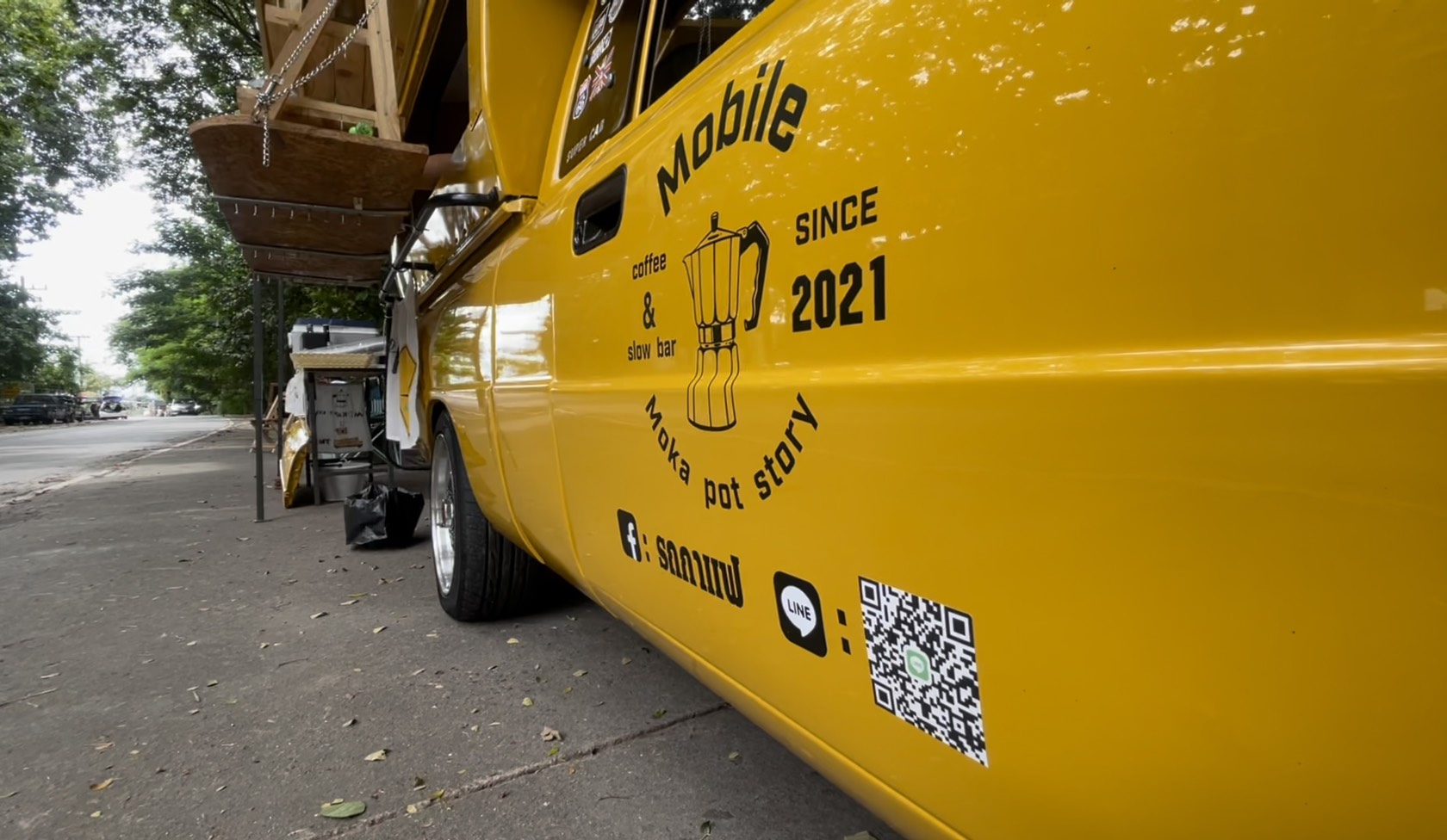 ทั้งน้ีทางด้าน นายจิรายุ ธนะหมี อายุ 40 ปี เจ้าของร้าน เล่าว่า จุดเริ่มต้นที่มาเริ่มขายกาแฟนั้นมาจากการที่ตนตกงาน โดยก่อนหน้านี้นั้นมีอาชีพขับแท็กซี่มิเตอร์ที่สนามบิน แต่ภายหลังจากที่เกิดการแพร่ระบาดของเชื้อไวรัสโควิด-19 เข้ามา ก็ทำให้จังหวัดมีการล็อคดาวน์ ทำให้ตนต้องหยุดทำงาน และหลังจากที่ผ่านพ้นล็อคดาวน์ ตนก็ออกมาทำงานรับจ้างแต่ตอนนั้นตนก็เริ่มที่จะรู้จักโมก้าพอท จากการที่ตนไปนั่งกินกาแฟ ประกอบกับช่วงนั้นตนไม่ได้ไปไหน จึงซื้ออุปกรณ์มาทำเองที่บ้าน จนเกิดเป็นความชอบและเริ่มซื้ออุปกรณ์สะสมทีละเล็กละน้อย และต่อมาตนก็มีโอกาสได้คุยกับน้องที่รู้จักชื่อว่า “น้องมาย” ซึ่งมีอาชีพขายกาแฟในลักษณะเป็นรถเปิดขายกาแฟแบบหม้อต้ม ตนจึงได้ไอเดียร์มาต่อยอดในการจะทำอาชีพขายกาแฟ แต่ก็ยังไม่มีทุนในการเปิดร้าน จึงได้วางแพลนไว้ และเริ่มทำฃานเก็บเงินด้วยการรับจ้างทั่วไป , รับจ้างก่อสร้าง และเป็นพนักงานไรเดอร์ส่งอาหาร จนกระทั่งเจอรถคันที่ใช้เปิดร้านที่เชียงราย โดยทางเจ้าของรถก็ขายให้ในราคาถูก ตนจึงนำเงินทุนที่เก็บไว้จากการทำงานมาเริ่มลงทุนกับการเปิดร้าน และเริ่มปรับปรุง ซ่อมแซม ตกแต่งรถคันนี้ให้กลายเป็นร้านกาแฟ