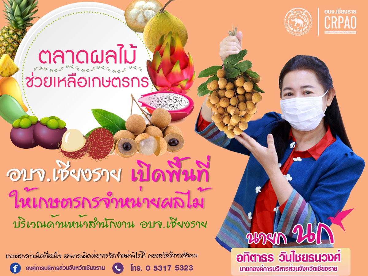 เนื่องด้วยสถานการณ์การแพร่ระบาดโรคติดเชื้อไวรัสโคโรนา 2019 ในพื้นที่จังหวัดเชียงรายยังคงมีการแพร่ระบาดอย่างต่อเนื่อง ส่งผลกระทบให้การกระจายผลผลิตการเกษตรในพื้นที่จังหวัดเชียงรายสู่ผู้บริโภคโดยตรงเป็นไปด้วยความลำบาก โดยเฉพาะช่วงนี้เป็นช่วงเก็บเกี่ยวลำไย ซึ่งเป็นหนึ่งในพืชเศรษฐกิจหลักของจังหวัดเชียงราย จึงทำให้เกิดภาวะลำใยล้นตลาด ทาง อบจ.เชียงราย จึงเปิดพื้นที่ให้เกษตรกรจำหน่ายลำใยและพืชผลเกษตรอื่นๆ มาจำหน่ายที่บริเวณด้านหน้าสำนักงาน อบจ.เชียงราย