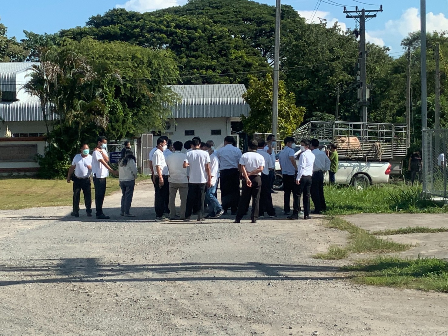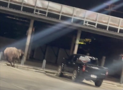นายณัฐจักรพันธ์ เล่าว่า ขณะกำลังเติมน้ำมันในปั๊มได้ยินเสียงรถชนกันบนถนนฝั่งตรงข้ามและเห็นควายเผือกตัวดังกล่าววิ่งเตลิดข้ามถนนเข้ามาในปั๊ม โดยวิ่งไปหลายจุดและยังไล่ขวิดชายคนหนึ่งจนตกลงไปในสระน้ำและยังทำให้พื้นทางเดินแตกเสียหาย พนักงานพยายามวิ่งไล่แต่ก็ไม่มีใครกล้าเข้าใกล้เพราะกลัวถูกควายขวิด ก่อนที่ควายเผือกจะวิ่งเตลิดหนีออกไปจากปั๊ม