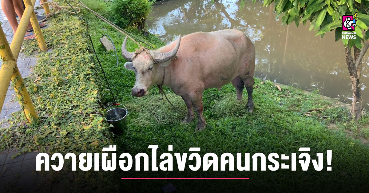 เกิดเหตุระทึกควายเผือกหลุดวิ่งเตลิดหนีตาย ข้ามถนนเข้าไปไล่ขวิดคนในปั๊มน้ำมัน ปตท.สาขาถนนมหิดล อ.เมืองเชียงใหม่ สร้างความแตกตื่นให้กับพนักงานปั๊มและลูกค้าที่ไปเติมน้ำมัน โดยนายณัฐจักรพันธุ์ พาฬเสวต ลูกค้าที่กำลังเติมน้ำมันได้ถ่ายคลิปวีดีโอเผยนาทีระทึกโพสต์ในเฟซบุ๊ค “หมง บูรณะของกิน” เหตุเกิดเมื่อเวลาประมาณ 20.00 น. วานนี้ ( 30 กันยายน )
