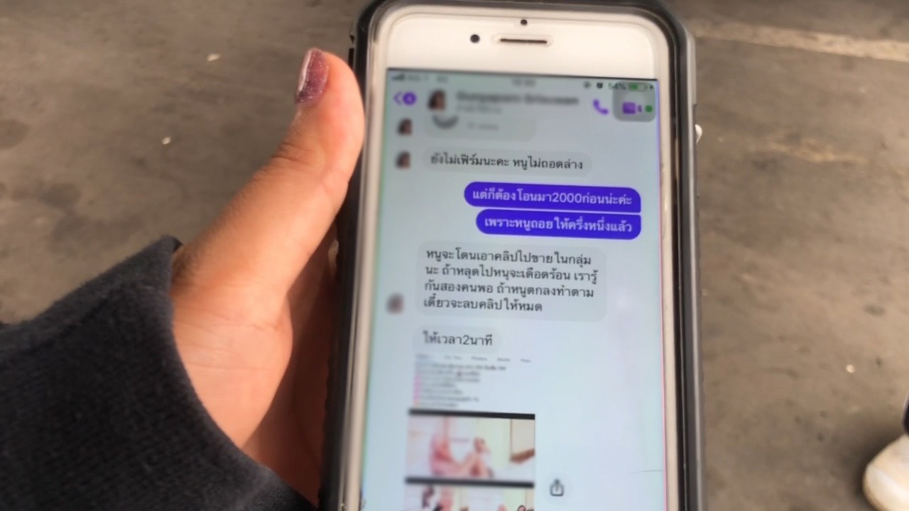 ทั้งนี้คนที่วิดีโอคอลมาพูดคุยแต่ไม่ยอมเปิดกล้องนั้น อ้างว่าจะว่าจ้างตัวเอง แต่ขอรูปร่างสัดส่วนอย่างชัดเจน โดยให้ถอดเสื้อผ้าออก ซึ่งตอนแรกตัวเองหลงเชื่อและถอดท่อนบนของร่างกาย จากนั้นถูกอีกฝ่ายคะยั้นคะยอให้ถอดท่อนล่างด้วย เพราะจะได้ค่าจ้างสูงขึ้นถึงหลักหมื่น พร้อมทำเป็นพูดว่าจะโอนเงินให้ 2,000 บาท ทางพร้อมเพย์ เป็นมัดจำค่าจ้าง แต่ตัวเองยืนยันว่าไม่สะดวกและไม่ยินยอม พร้อมทั้งทวงถามค่ามัดจำ 2,000 บาทที่อีกฝ่ายอ้างว่าโอนให้แต่ยังไม่ได้โอนมา ปรากฏว่าอีกฝ่ายได้เปลี่ยนท่าทีเป็นการข่มขู่ว่าได้บันทึกภาพคลิปวิดีโอที่ตัวเองถอดท่อนบนไว้และจะนำไปเผยแพร่ในโซเชียลมีเดียหรือขายในกลุ่มเฉพาะ หากตัวเองไม่ยอมถอดท่อนล่างให้ดู รวมทั้งขอมีเพศสัมพันธ์กับตัวเองด้วย ซึ่งตัวเองยืนยันเช่นเดิม และจากนั้นอีกฝ่ายได้ตัดขาดการติดต่อไป
