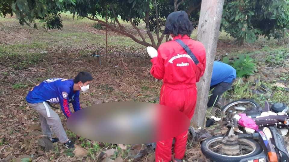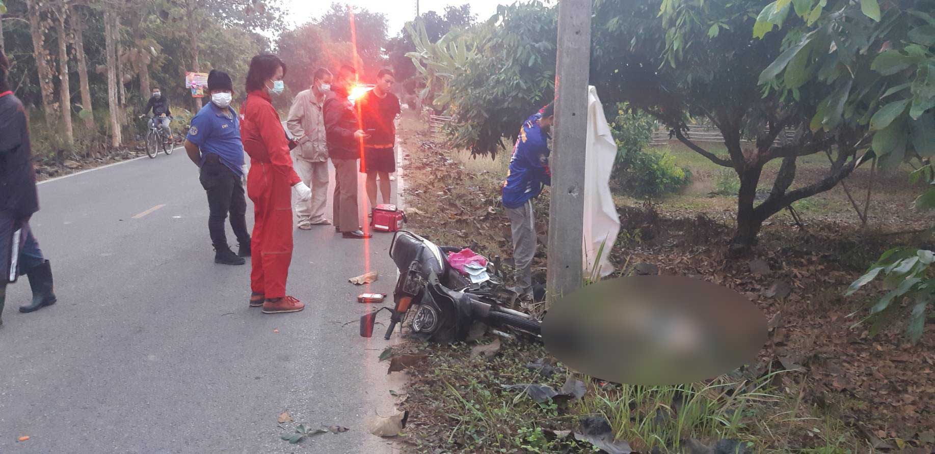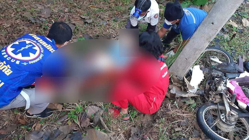 หนุ่มเบญจเพส อ.เวียงสา ขี่จักรยานยนต์เสียหลักชนเสาไฟฟ้าดับคาที่