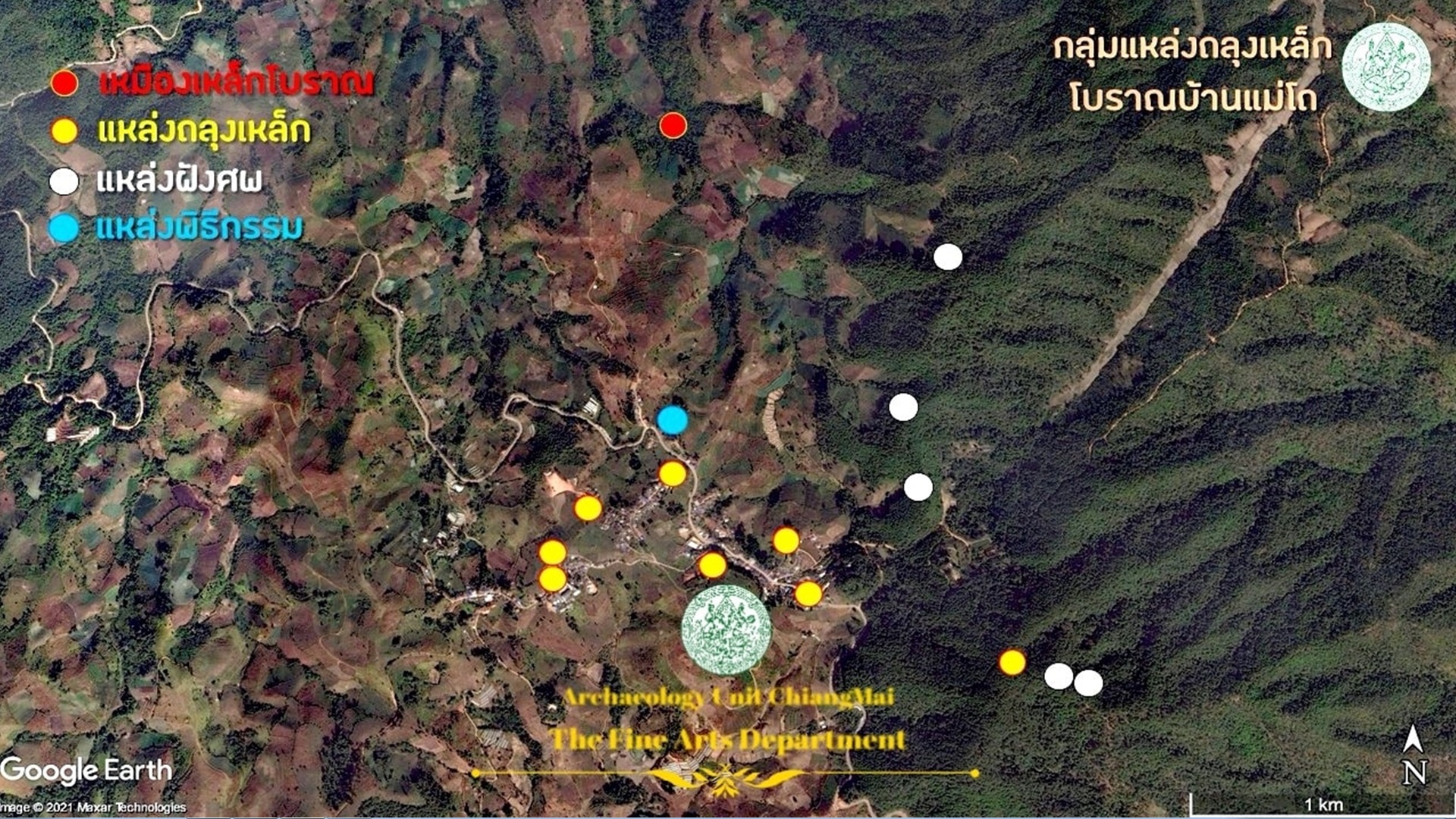 สำนักศิลปากรที่ 7 เชียงใหม่ รายงานการปฏิบัติงานทีมสำรวจและเก็บข้อมูลในพื้นที่ดอยแม่โถว่า จากการลงพื้นที่สำรวจอย่างต่อเนื่อง ได้พบร่องรอยเหมืองแร่เหล็กโบราณในหุบเขา ตามที่ปรากฏอยู่ในหลักฐานเอกสารทางประวัติศาสตร์ ตำนานเรื่องเล่าเกี่ยวกับ แหล่งทรัพยา กรเหล็กที่สำคัญของเมืองเชียงใหม่ ซึ่งผูกพันธ์กับกลุ่มชาติพันธ์ุลัวะ