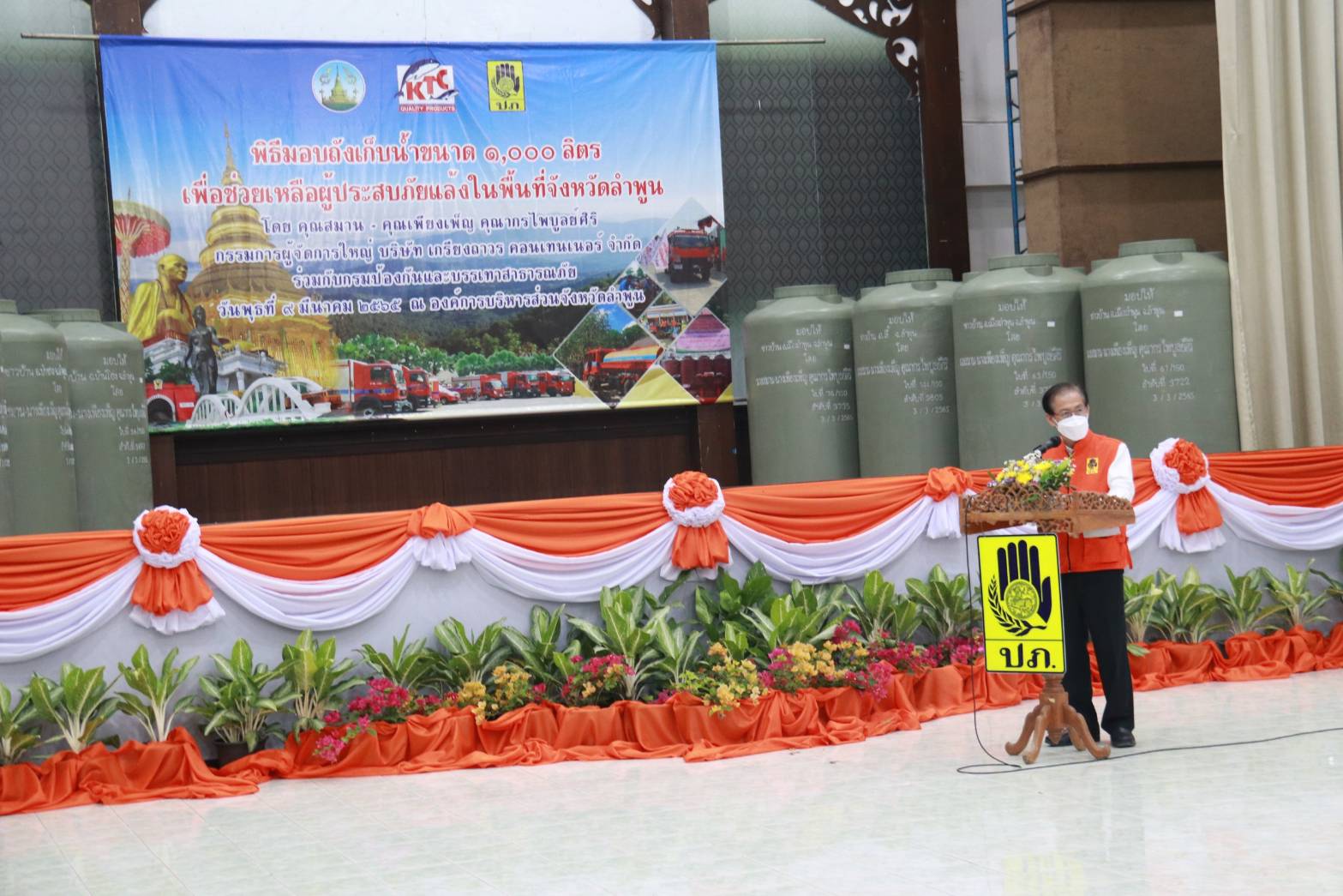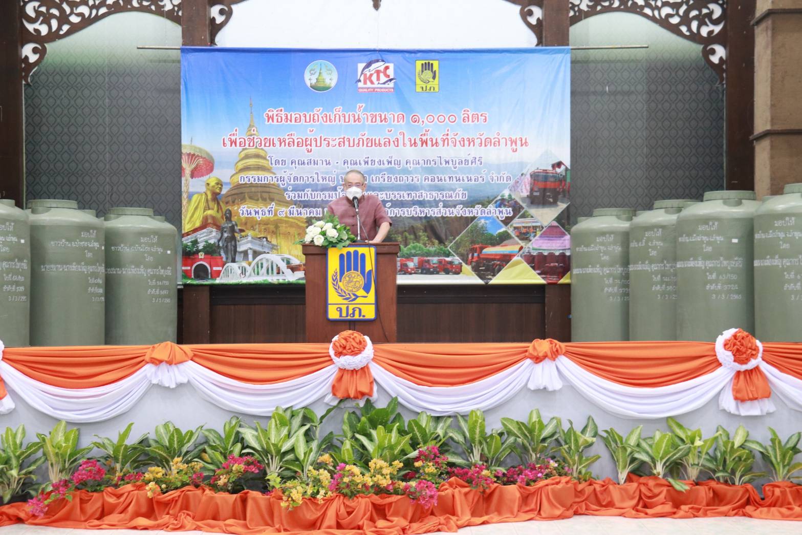 นายธนา นวลปลอด นักวิเคราะห์นโยบายและแผนชำนาญการพิเศษ รักษาราชการแทนหัวหน้าสำนักงานป้องกันและบรรเทาสาธารณภัยจังหวัดลำพูน กล่าวว่า จากสถานการณ์ภัยแล้งที่เกิดขึ้น ได้ก่อให้เกิดผลกระทบต่อชีวิตและความเป็นอยู่ของประชาชนในพื้นที่จังหวัดลำพูนเป็นประจำทุกปี โดยเฉพาะประชาชนที่อยู่ในพื้นที่ห่างไกล ทั้งนี้ คุณสมาน คุณากรไพบูลย์ศิริ กรรมการผู้จัดการใหญ่ บริษัท เกรียงถาวร คอนเทนเนอร์ จำกัด พร้อมคณะฯ มีความประสงค์จะมอบสิ่งของบริจาคให้กับหมู่บ้านที่ประสบปัญหาภัยแล้ง ตลอดจนผู้ยากไร้ ผู้สูงอายุ และผู้พิการ เพื่อบรรเทาความเดือดร้อนของประชาชนในพื้นที่จังหวัดลำพูน โดยมีสิ่งของที่บริจาค ประกอบด้วย ถังบรรจุน้ำขนาด 1,000 ลิตร จำนวน 150 ถัง ให้กับหมู่บ้านที่ประสบภัยแล้งเพื่อใช้เป็นถังน้ำกลางประจำหมู่บ้าน กล่องพลาสติกบรรจุสิ่งของอุปโภคบริโภค จำนวน 150 กล่อง ให้ผู้ที่ยากไร้ขาดแคลน เก้าอี้สุขาพลาสติก จำนวน 150 ตัว ให้กับผู้สูงอายุ และ ผู้ทุพพลภาพ(บกพร่องทางร่างกาย)