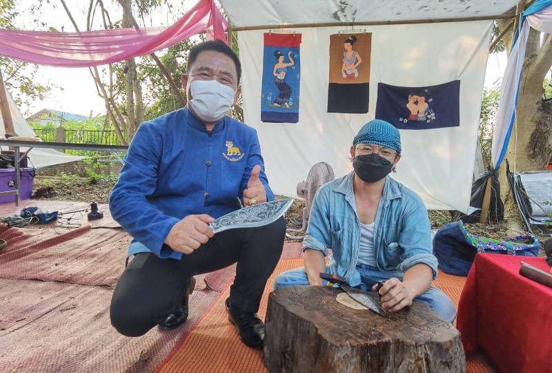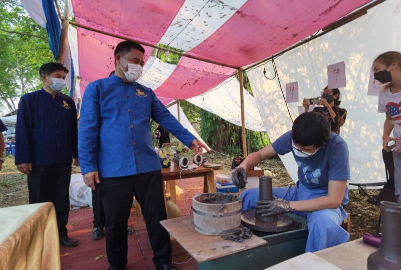การแสดงผลงานศิลปะอันทรงคุณค่าจากกลุ่มสล่าเมืองแพร่ แกะไม้พุทธศิลป์ กลึงไม้ต้องลาย ลานทุบมะเก่า ปั้นดินเผา ตีเหล็ก การเสวนาเล่าเรื่องประวัติศาสตร์ ความสัมพันธ์บ่อเหล็กลองกับบ้านร่องฟอง