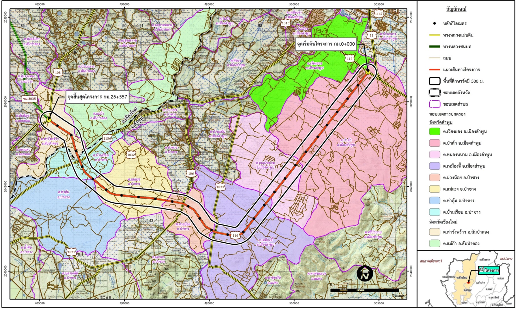 “เพื่อให้การพัฒนาโครงการมีความสมบูรณ์ทางด้านวิศวกรรมสอดคล้องกับสภาพสิ่งแวดล้อม เศรษฐกิจ และสังคม มีการศึกษา รวบรวม และวิเคราะห์สภาพแวดล้อมในปัจจุบัน ประเมินผลกระทบ และเสนอมาตรการป้องกัน แก้ไข ลดผลกระทบให้แผนเหมาะสมและมีประสิทธิภาพซึ่ง พื้นที่การศึกษาจะดำเนินการในระยะ 500 เมตร จากกึ่งกลางแนวเส้นทางโครงการที่ ครอบคลุมพื้นที่ 10 ตำบล ในเขตพื้นที่ 3 อำเภอ 2 จังหวัด ได้แก่ ต.ป่าสัก ต.เวียงยอง ต.หนองหนาม ต.เหมืองจี้ อ.เมืองลำพูน ต.ม่วงน้อย ต.แม่แรง ต.ท่าตุ้ม ต.บ้านเรือน อ.ป่าซาง จ.ลำพูน และต.แม่ก๊า ต.ท่าวังพร้าว อ.สันป่าตอง จ.เชียงใหม่ กรมทางหลวงได้ว่าจ้าง บ. อินเด็กซ์ อินเตอร์เนชั่นแนล กรุ๊ป จำกัด (มหาชน) บ. ดีเคด คอนซัลแตนท์ จำกัด และบ.กรีน พลาเน็ท คอนซัลแตนท์ จำกัด ดำเนินการศึกษาและวิเคราะห์ผลกระทบสิ่งแวดล้อม โครงการจ้างวิศวกรที่ปรึกษาสำรวจและออกแบบทางหลวง 4 ช่องจราจรบน ทางหลวงหมายเลข 116 ช่วง บ.ป่าสัก-ต.ท่าวังพร้าว รวมสะพานข้ามแม่น้ำปิงด้วย