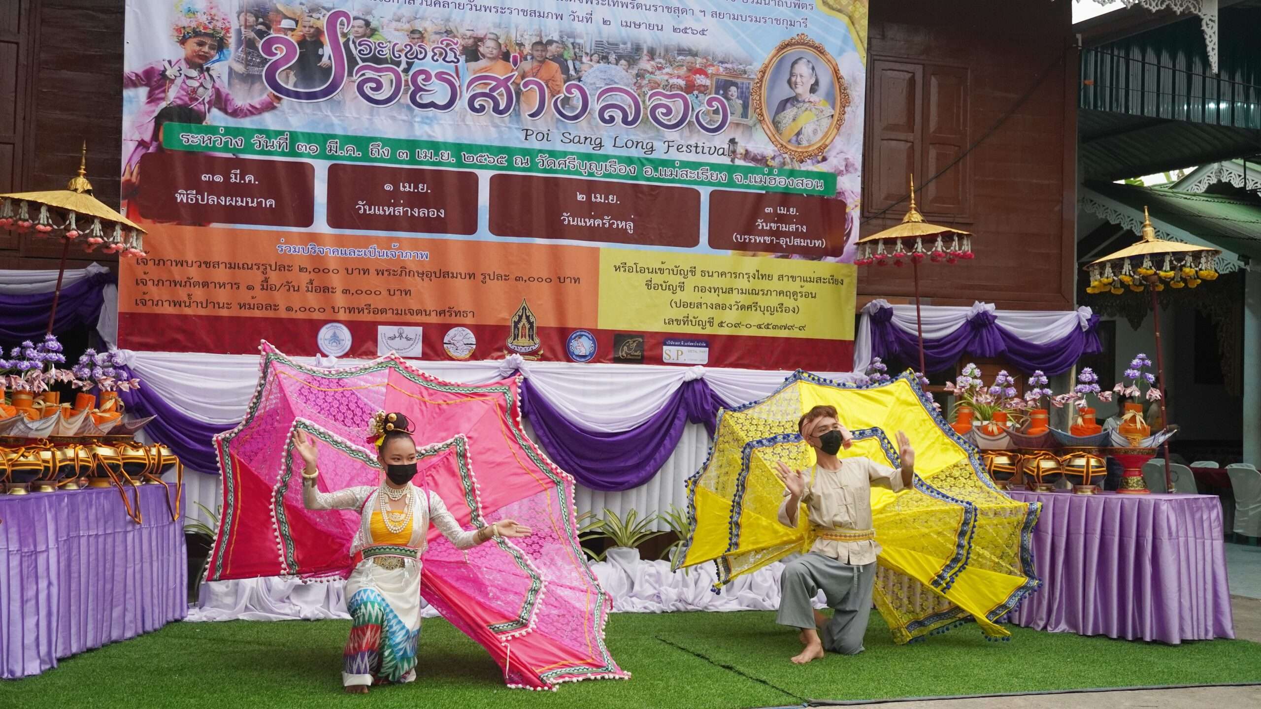เริ่มขึ้นแล้วงานประเพณีปอยส่างลอง ประจำปี 2565 ณ วัดศรีบุญเรือง อ.แม่สะเรียง จ.แม่ฮ่องสอนในโครงการบรรพชาสามเณร และอุปสมบทพระภิกษุปอยส่างลองฯ