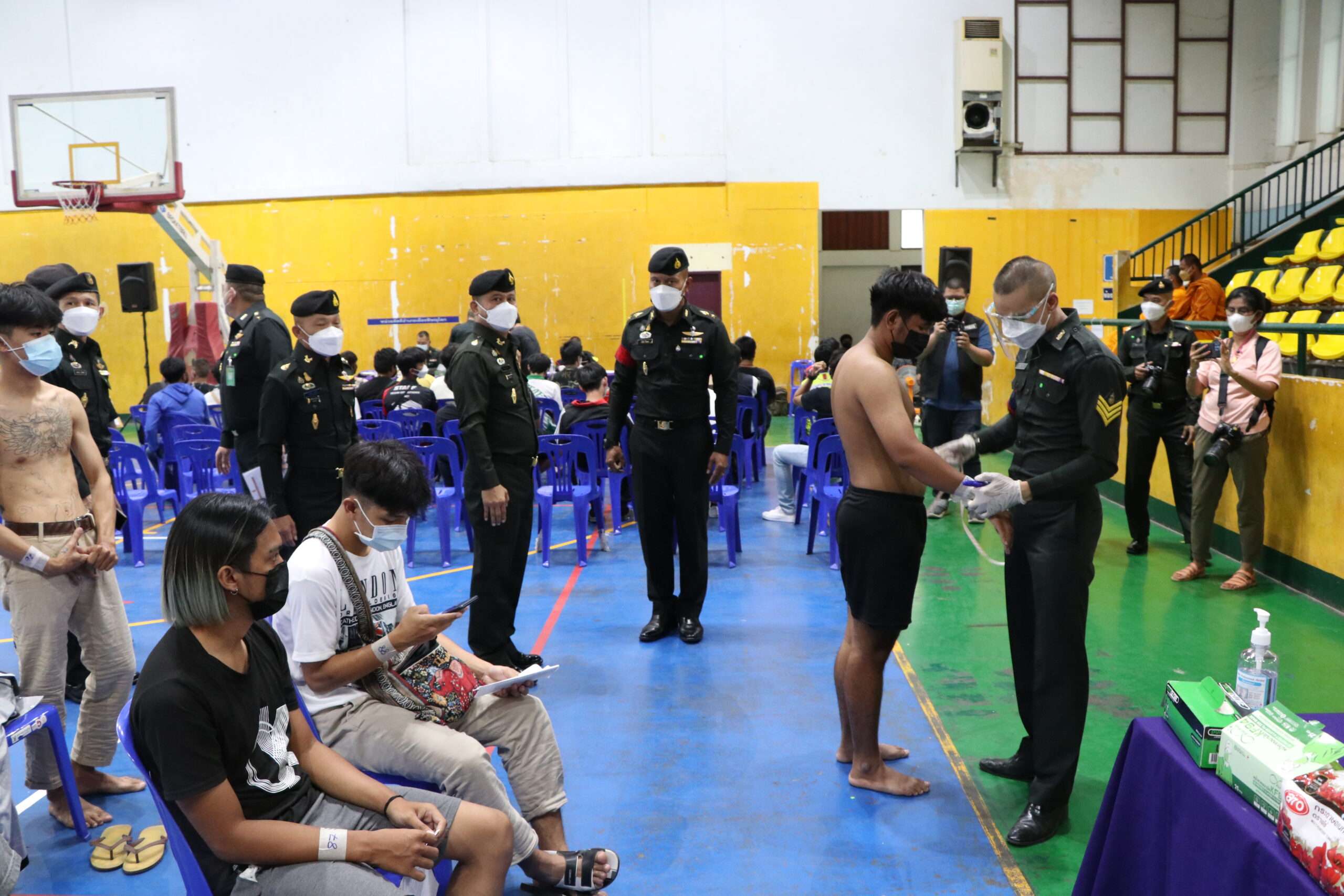 สำหรับบรรยากาศการตรวจคัดเลือกทหารกองเกินในอำเภอเมืองพิษณุโลกวันนี้ ตั้งแต่ช่วงเช้าที่ผ่านมาเป็นไปอย่างคึกคัก มีพ่อ แม่ ญาติพี่น้องเดินทางมาให้กำลังใจบุตรหลาน และมีบรรดาชายไทยนำเอกสารใบสำคัญทหารกองเกิน หรือ สด.9 และเอกสารสำคัญอื่นๆ อาทิ บัตรประจำตัวประชาชน หลักฐานแสดงคุณวุฒิการศึกษา มายื่นแสดงให้กับเจ้าหน้าที่ทหารที่อยู่ประจำจุดต่างๆ โดยมีการวัดน้ำหนัก ส่วนสูง และความผิดปกติทางร่างกายของทีมแพทย์ เพื่อจัดคัดแยกประเภทบุคคล