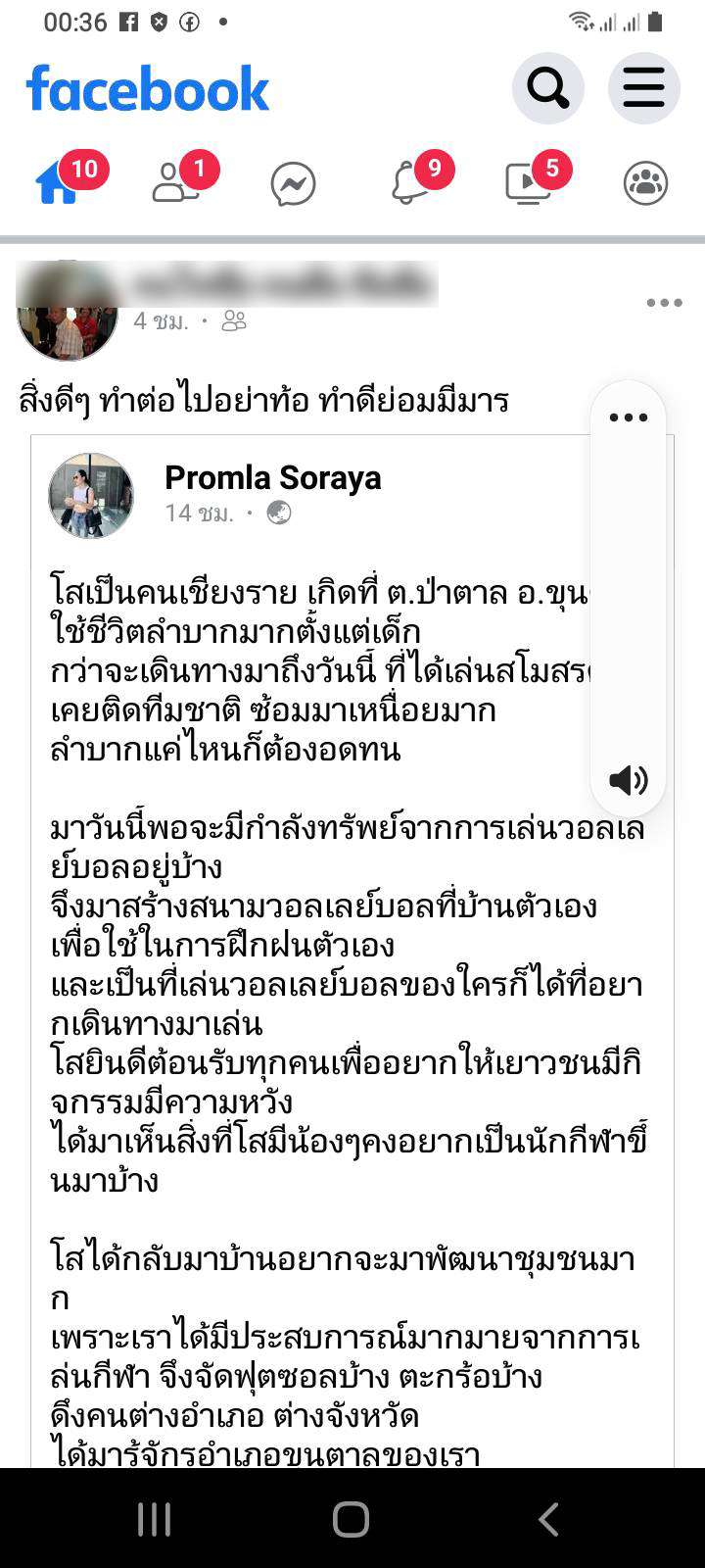 ส่งกำลังใจล้นให้ ”โสรยา พรมหล้า” อดีตนักวอลเลย์บอลทีมชาติไทย ตั้งใจพัฒนากีฬาที่บ้านเกิดมีมารผจญ