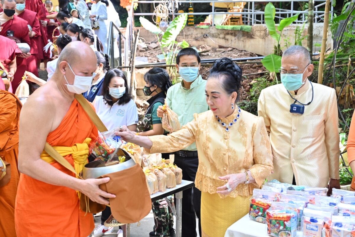 วันที่ 22 มิ.ย. 65 ที่บริเวณด้านหน้าถ้ำหลวง ภายในอุทยานแห่งชาติถ้ำหลวงขุนน้ำ-นางนอน อำเภอแม่สาย จังหวัดเชียงราย ดร.ฉวีวรรณ คำพา นายกสมาคมส่งเสริมการเลี้ยงไก่แห่งประเทศไทย ในพระบรมราชูปถัมภ์ เป็นประธานในพิธีทำบุญครบรอบ 4 ปี ถ้ำหลวง-ขุนน้ำนางนอน โดยมีผู้บริหารอุทยานฯ ประชาชนทุกหมู่เหล่าในพื้นที่ รวมทั้งน้องๆ 13 หมูป่าที่ติดถ้ำหลวงเมื่อ 4 ปีก่อนเข้าร่วมพิธี กิจกรรมในงานประกอบด้วย การประกอบพิธีบวงสรวงเจ้าแม่นางนอน และสิ่งศักดิ์สิทธิ์ภายในถ้ำหลวง-ขุนน้ำนางนอน, พิธีทำบุญตักบาตรพระสงฆ์ 39 รูป และพิธีทำบุญสืบชะตาต่ออายุ