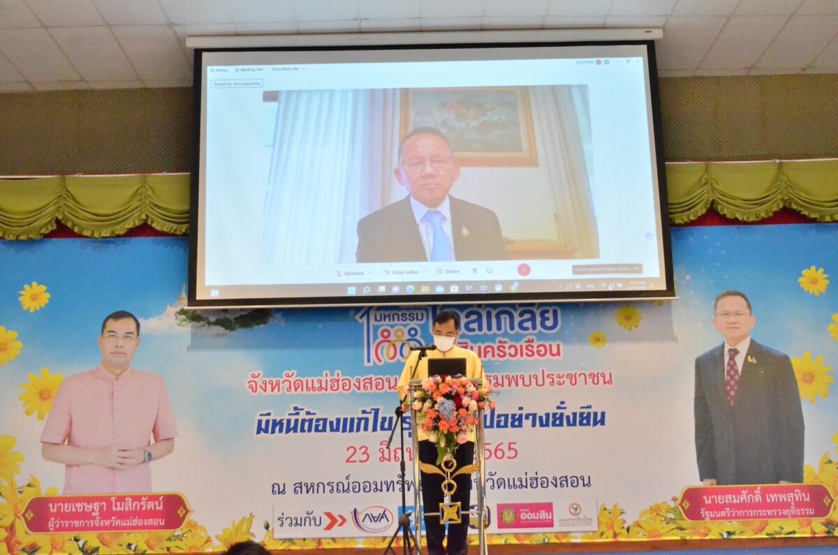 วันนี้ (23 มิ.ย. 65) ณ สหกรณ์ออมทรัพย์ครู จ.แม่ฮ่องสอน ปปส.ภาค 5 ได้เข้าร่วมงานมหกรรมไกล่เกลี่ยหนี้สินครัวเรือน ครั้งที่ 35 และยุติธรรมพบประชาชน จ.แม่ฮ่องสอน โดยมี นายสมศักดิ์ เทพสุทิน รมว.ยุติธรรม เป็นประธานเปิดงาน ซึ่งเป็นการ Video Conference จากรัฐสภา พร้อมด้วย นายเชษฐา โมสิกรัตน์ ผู้ว่าราชการจังหวัดแม่ฮ่องสอน นายชนาธิป เสมแย้ม ปลัดจังหวัดแม่ฮ่องสอน นายวัลลภ นาคบัว รองปลัดกระทรวงยุติธรรม ข้าราชการ เจ้าหน้าที่กระทรวงยุติธรรม และประชาชนร่วมงาน โดยก่อนเข้างานมีการคัดกรองโควิด-19 อย่างเข้มงวด ทั้งนี้ท่านวัลลภ นาคบัว ได้มอบต้นกระท่อมให้ตัวแทนภาคประชนที่มาร่วมงานดังกล่าวด้วย