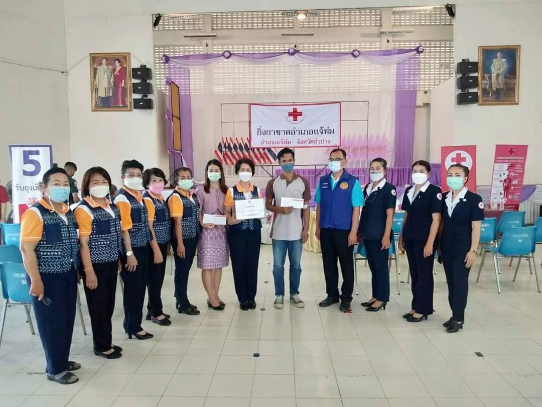 รองนายกเหล่ากาชาดจังหวัดลำปาง คณะกรรมการ/สมาชิกเหล่ากาชาดจังหวัดลำปาง พร้อมด้วยนายชาญ จูดคง นายอำเภอแจ้ห่ม/นายกกิ่งกาชาดอำเภอแจ้ห่ม