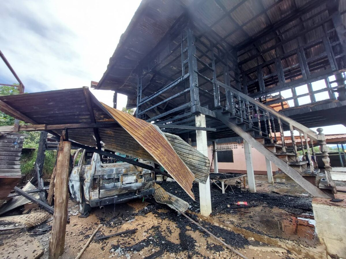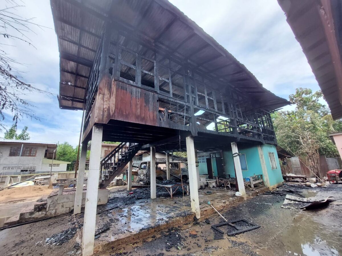- นางประนอม เทียนทอง บ้านเลขที่ 87 หมู่ที่ 9 ต.ร่องกาศ อ.สูงเม่น เสียหายทั้งหลัง