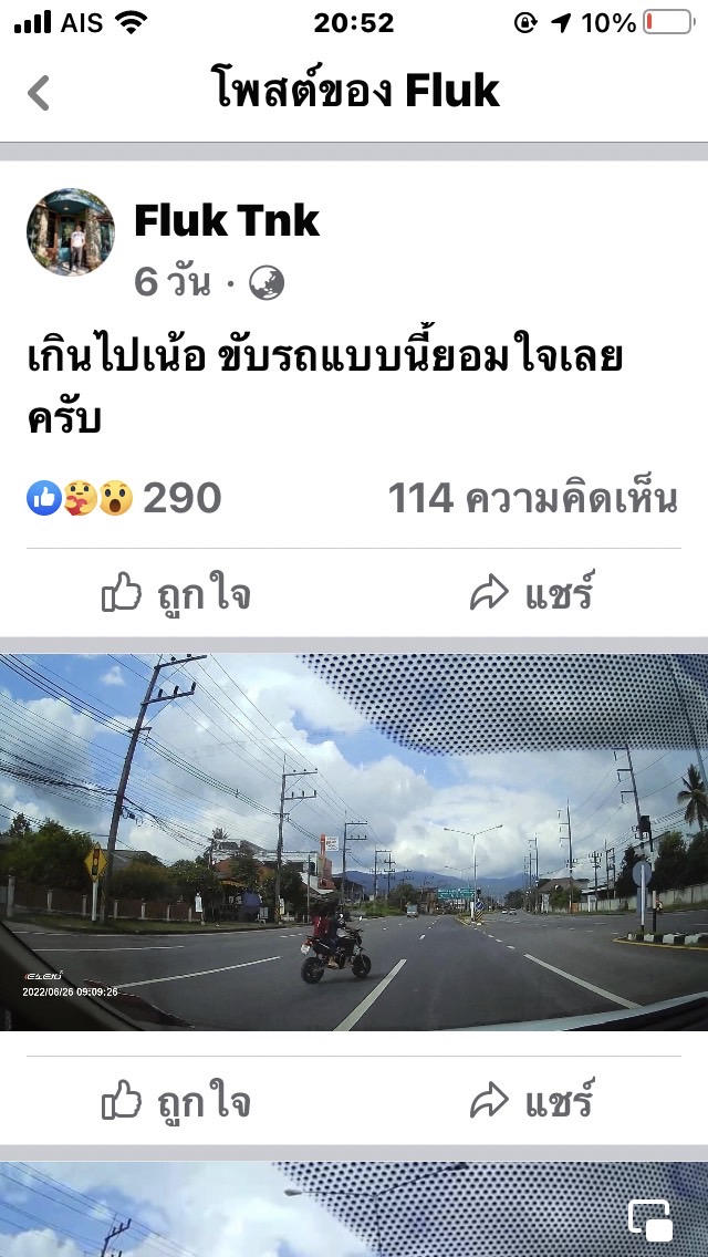 วันที่ 2 ก.ค. 65 ผู้สื่อข่าวรายงานว่า ผู้ใช้เฟซบุ๊กชื่อ “Fluk Tnk” ได้นำภาพและคลิปที่พบเจอมากับตัวเอง มาโพสต์ลงในโซเซียล เพื่อเตือนสติและเป็นอุทาหรณ์ผู้ใช้รถใช้ถนนให้ระมัดระวังในการขับรถ